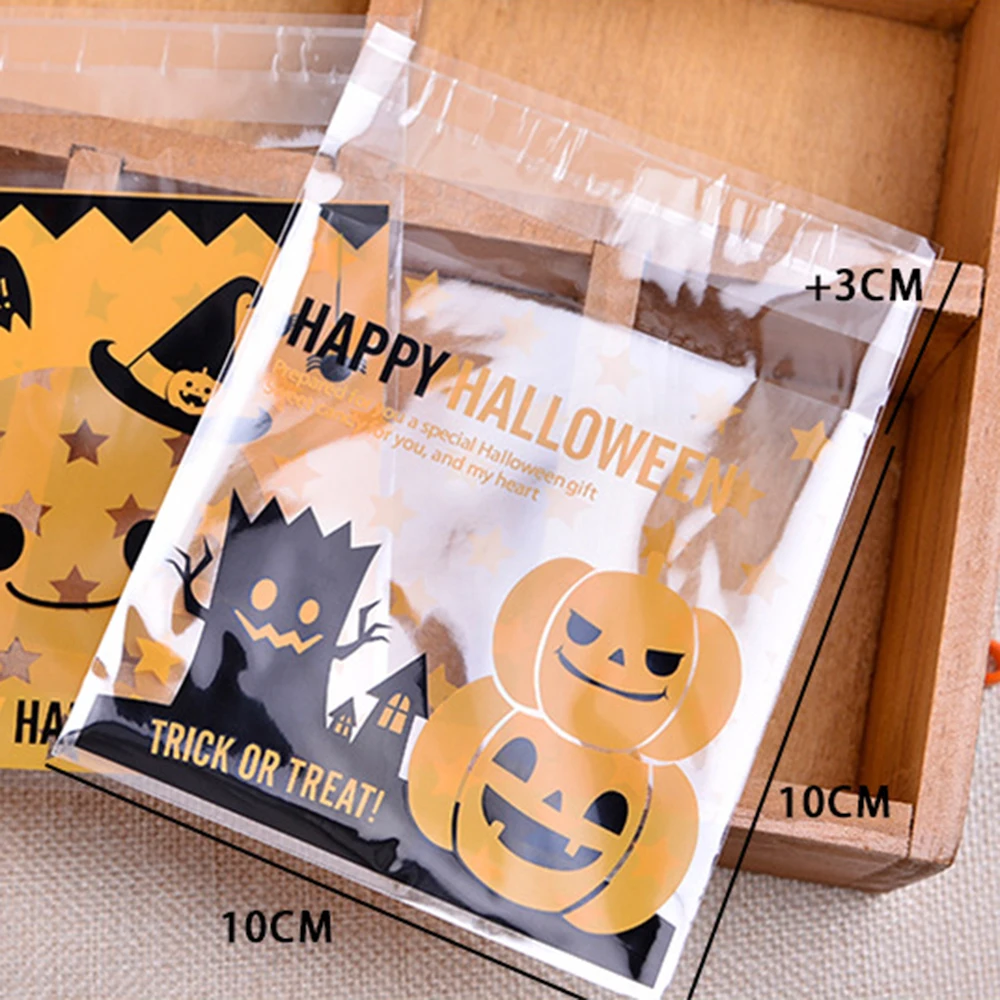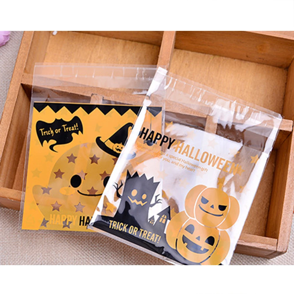 100pc/Set Halloween Cookie Candy Bread Packaging Bags Self-adhesive Plastic Bags Biscuits Snack Baking Package