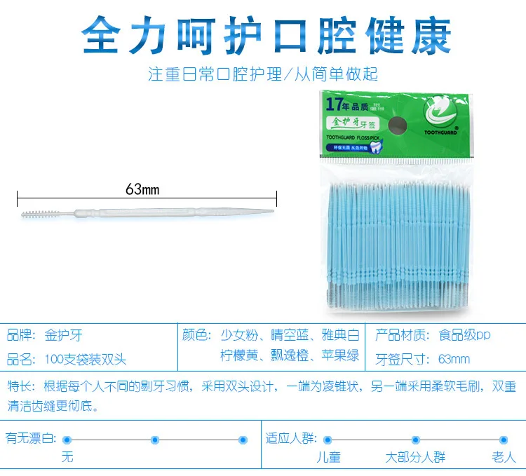 100pcs/box Double Head Dental Floss Interdental Toothpick Brush Brush Teeth Stick Dental Oral Care Toothpicks Floss Pick