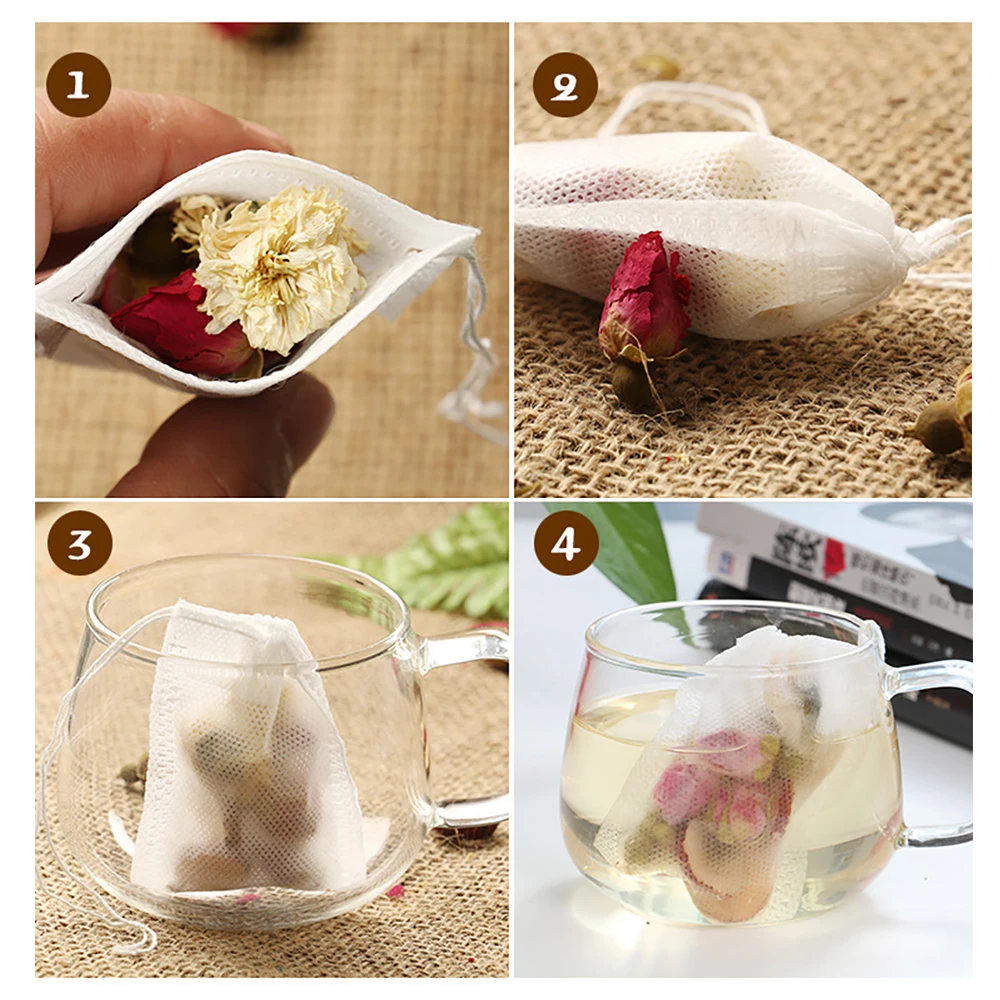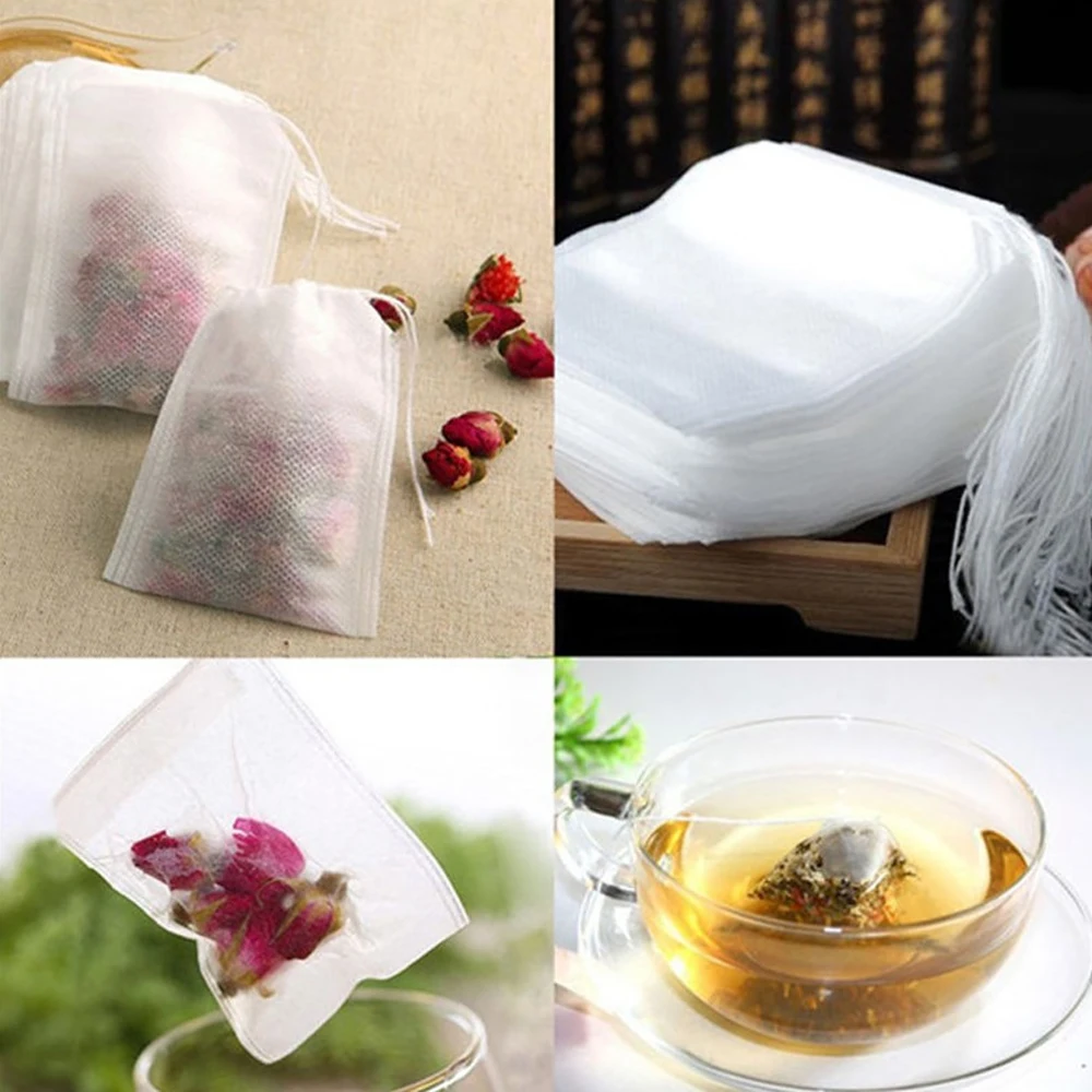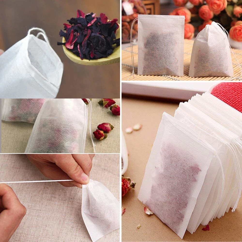 100pcs/lot 5.5 X 7cm Teabags Filter Paper Bags String Heat Seal Empty Infuser Bag Strainer Drawstring Teabag For Herb Loose Tea
