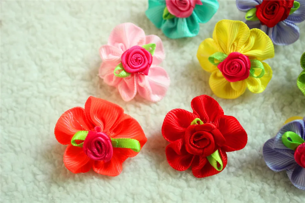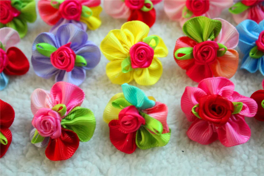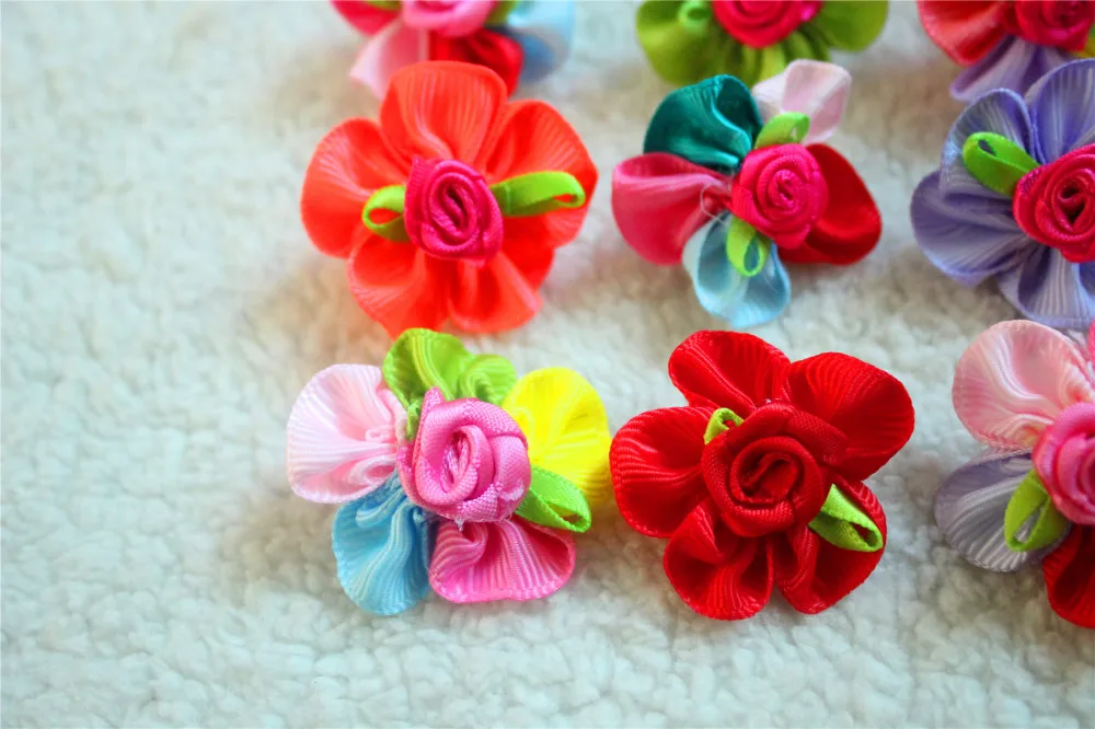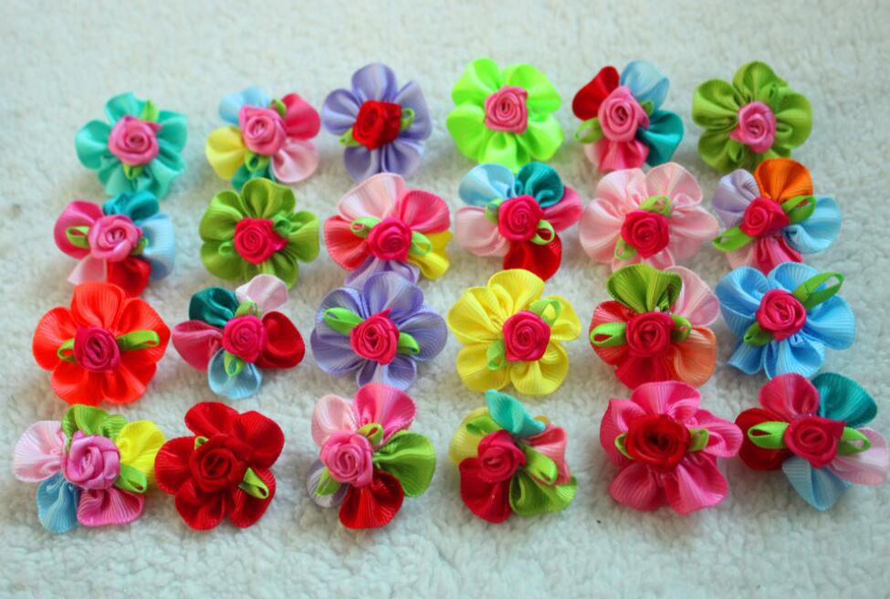 100pcs Pet Dog Hair Accessories Rubber Bands Rose Dog Hair Bows Dog Grooming Bows for samll dogs