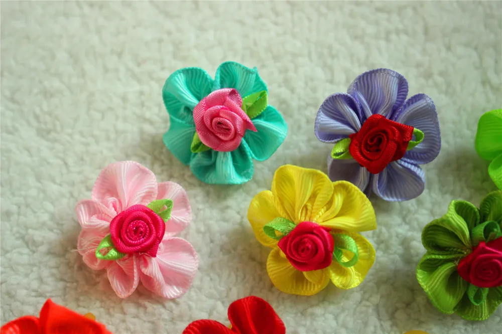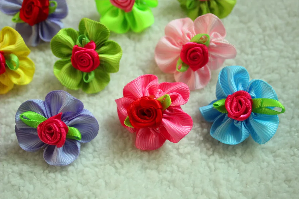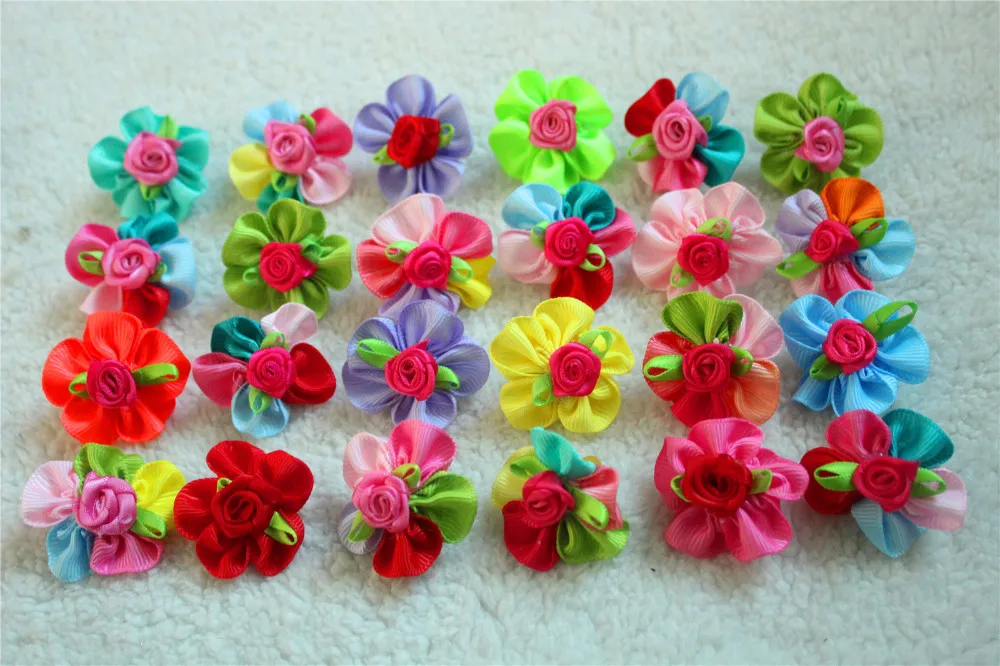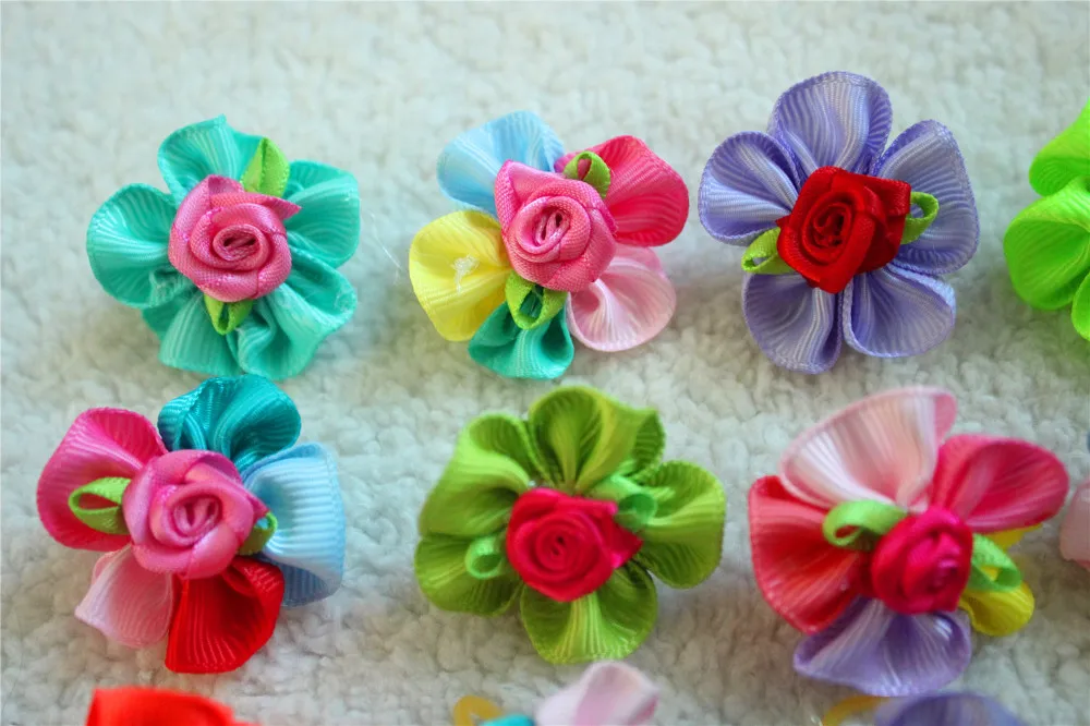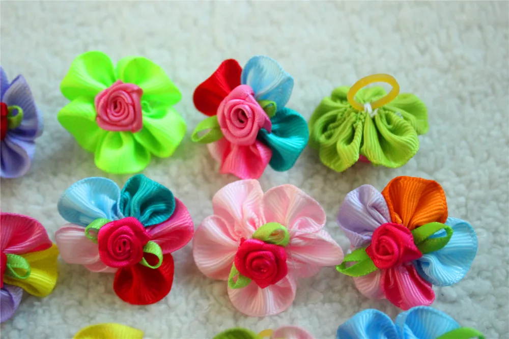 100pcs Pet Dog Hair Accessories Rubber Bands Rose Dog Hair Bows Dog Grooming Bows for samll dogs