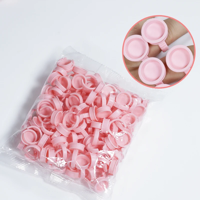 100pcs pink Disposable Permanent Makeup Ring Medium No-Divider Tattoo Ink Eyebrow Lip Tattoo Pigments Holder Rings Container/cup