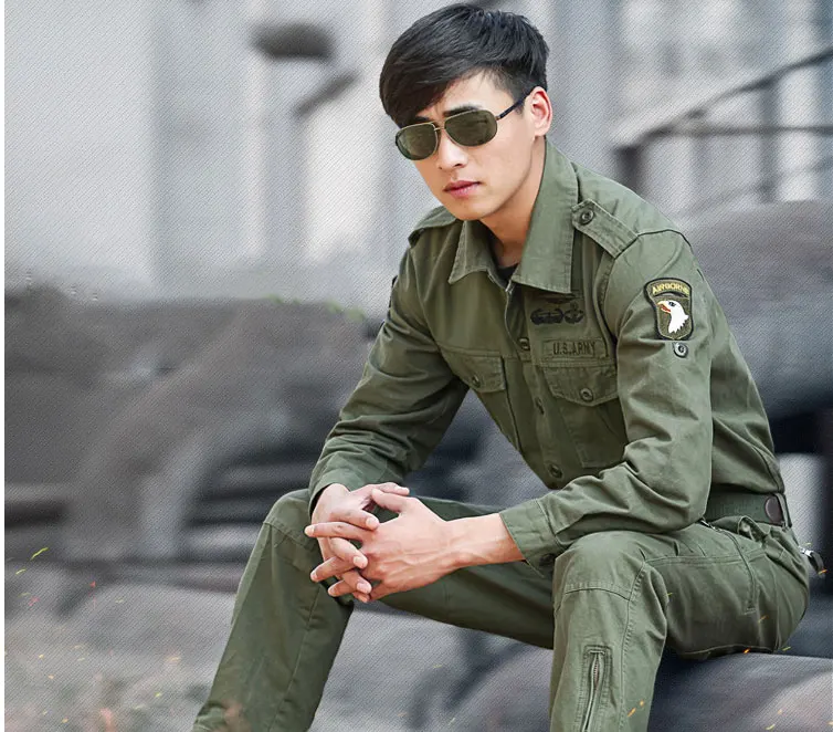 US Army 101 Airborne Uniform Suit Special Forces Combat Camouflage Clothes Sets Men Military Tactical Clothing Tops + Trousers