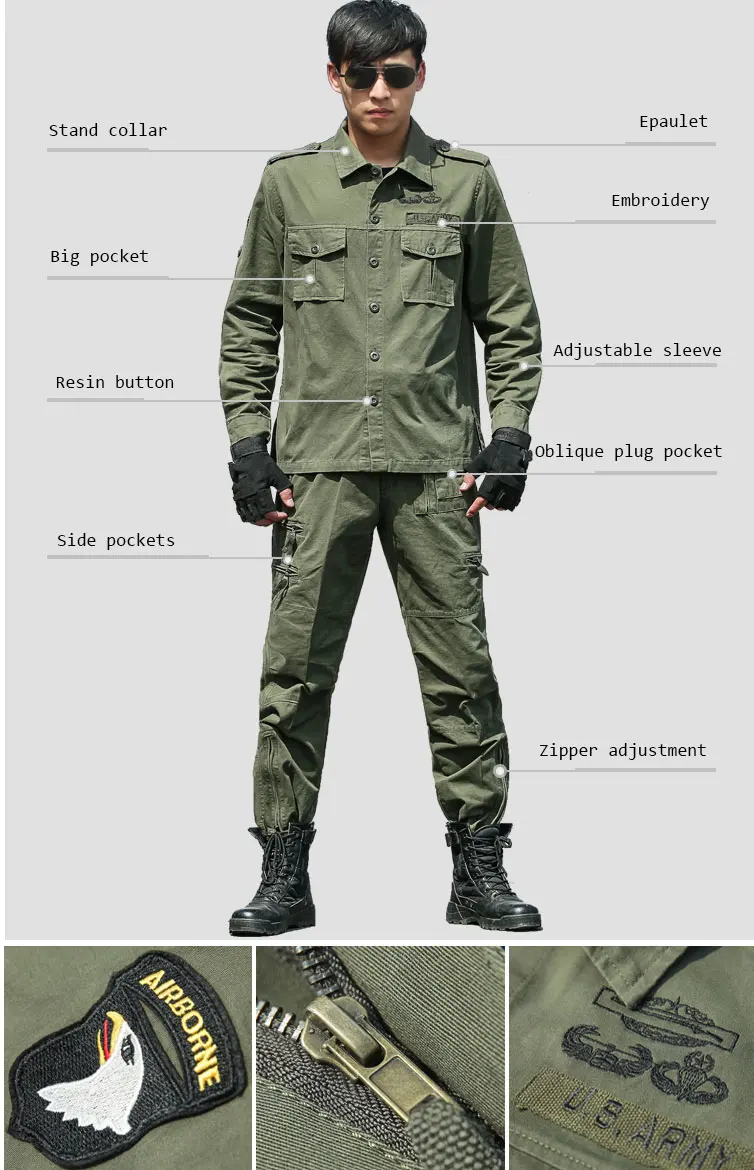 US Army 101 Airborne Uniform Suit Special Forces Combat Camouflage Clothes Sets Men Military Tactical Clothing Tops + Trousers