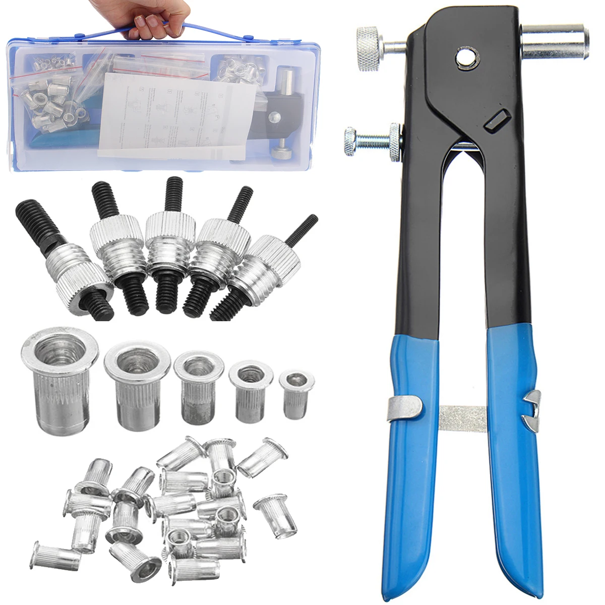 106pcs Nut Rivet Riveter Rivnut Nutsert Gun Riveting Kit M3-M8 Threaded Mandrels Household Repair Tools