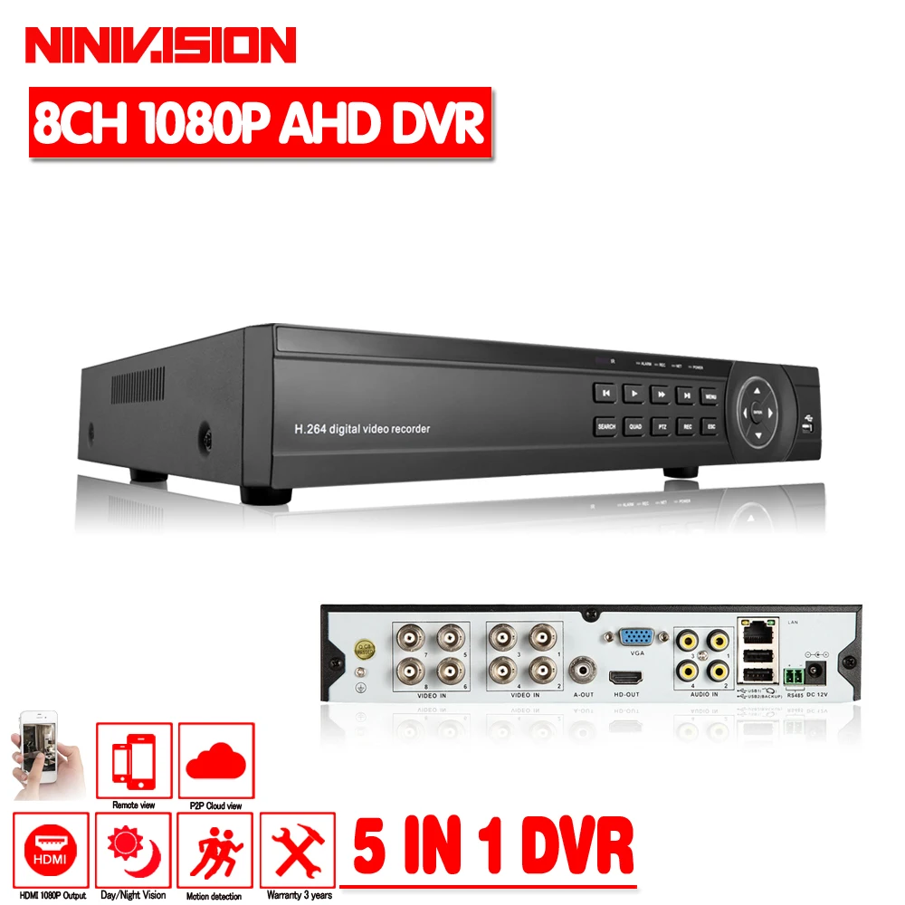 - 1 X 8CH AHD 1080P DVR NVR HVR 5 in 1 Digital Video Recorder