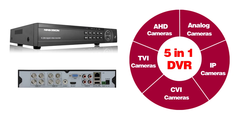 AHD DVR Compatibilty Support:Analog Camera / AHD Camera / TVI Camera / CVI Camera / IP Camera.