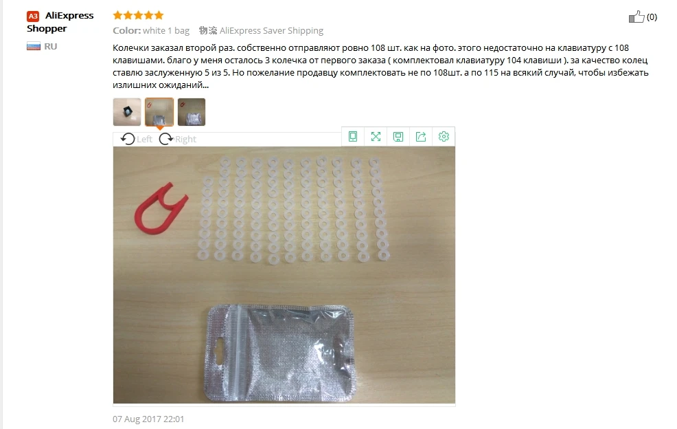 A bag of products contains 104 Silencer rings(Cherry MX Switch Keycap O-Ring Dampeners)