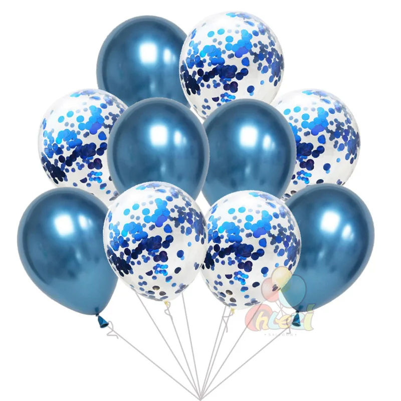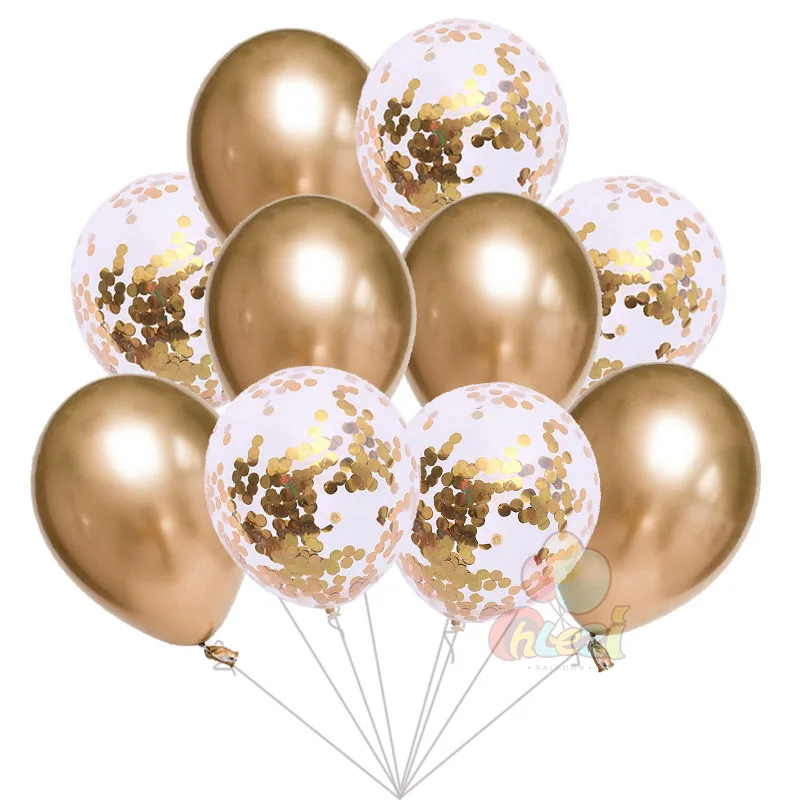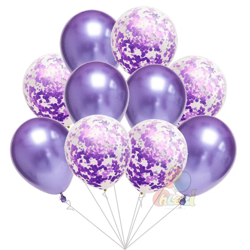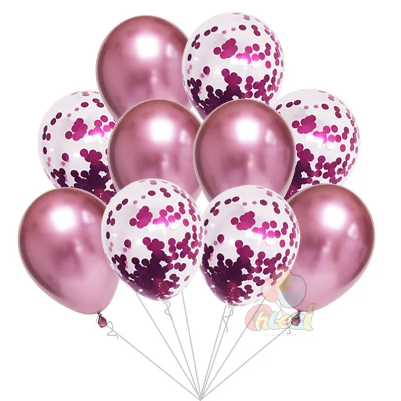 5pcs Chrome Metallic balloons+ 5pcs Paillette Confetti balloon