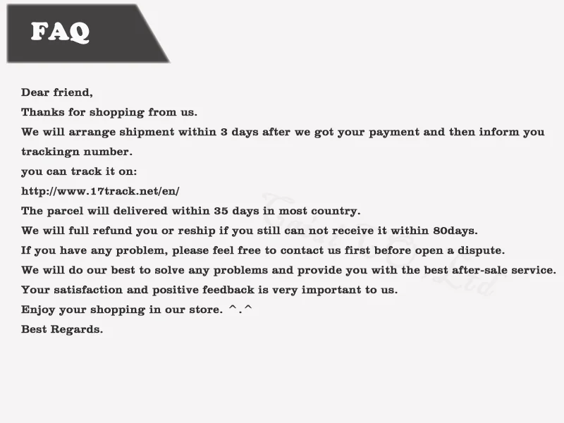 *You can submit refund requests within 15 days after the guaranteed period for delivery (45 days) has expired. You can do it by sending a message on Contact Us page