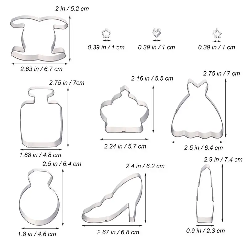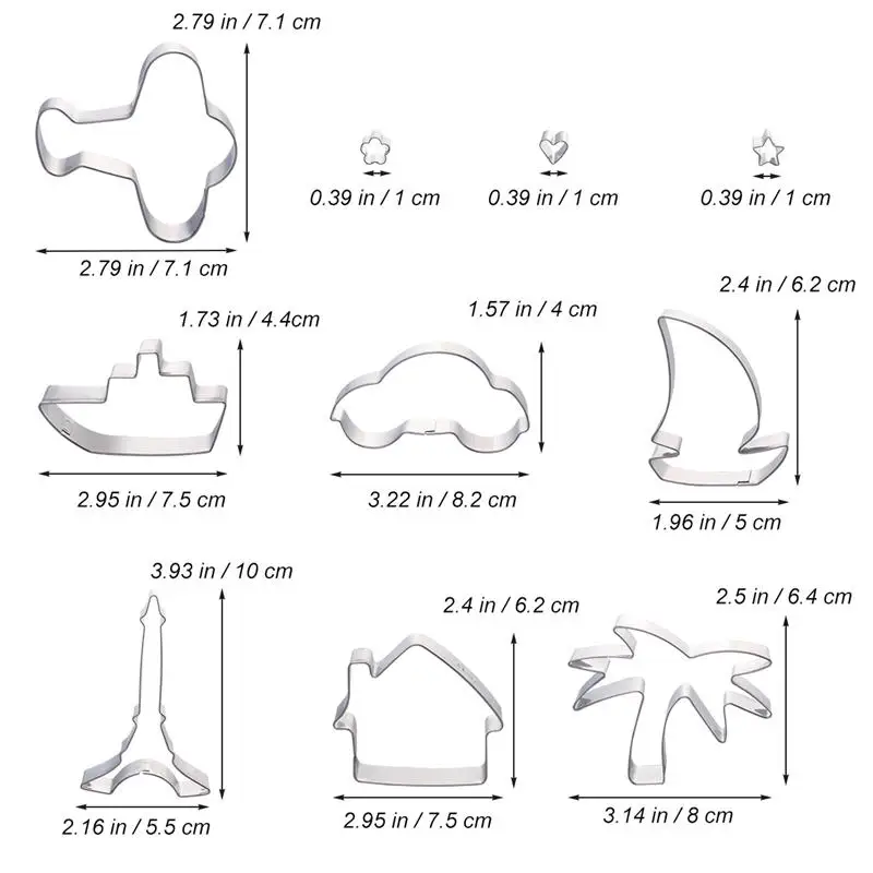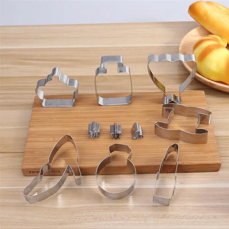 1 x set of 10pcs Cookie Cutters Kit Stainless Steel Cake Molds Cake Baking Molds Set for Kids Party