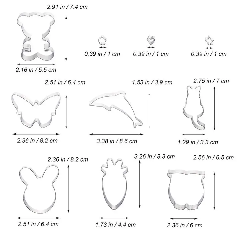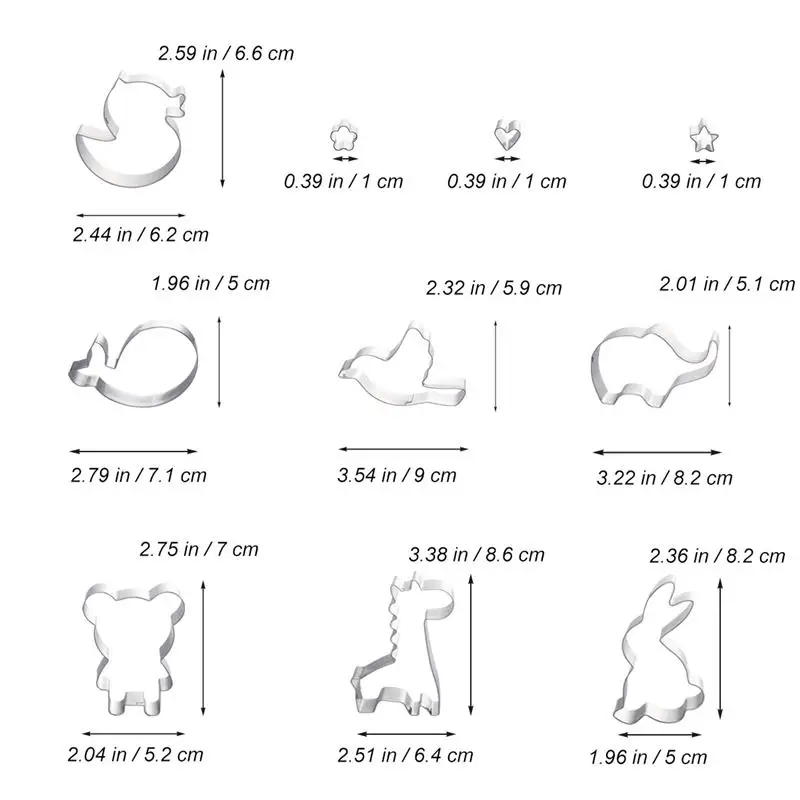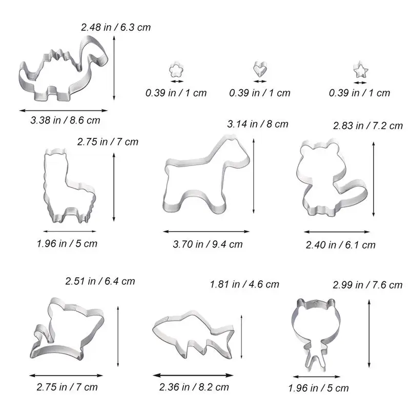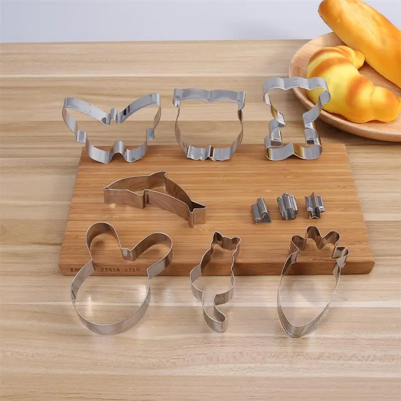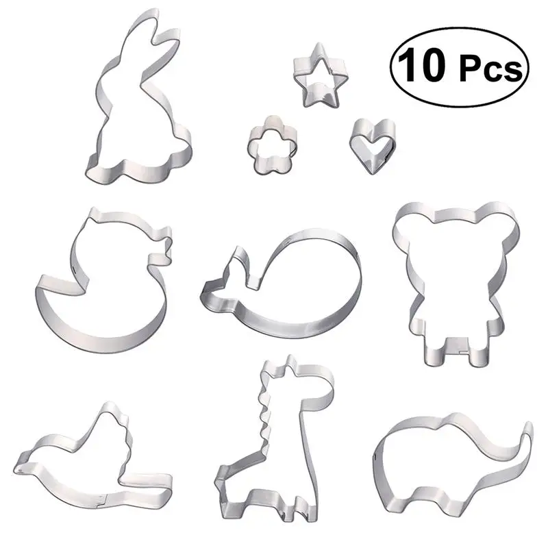 10pcs Cute Animal Shaped Cookie Cutters Kit Biscuit Mould Stainless Steel Cake Molds Baking Molds Set for Kids Party Decor Tools