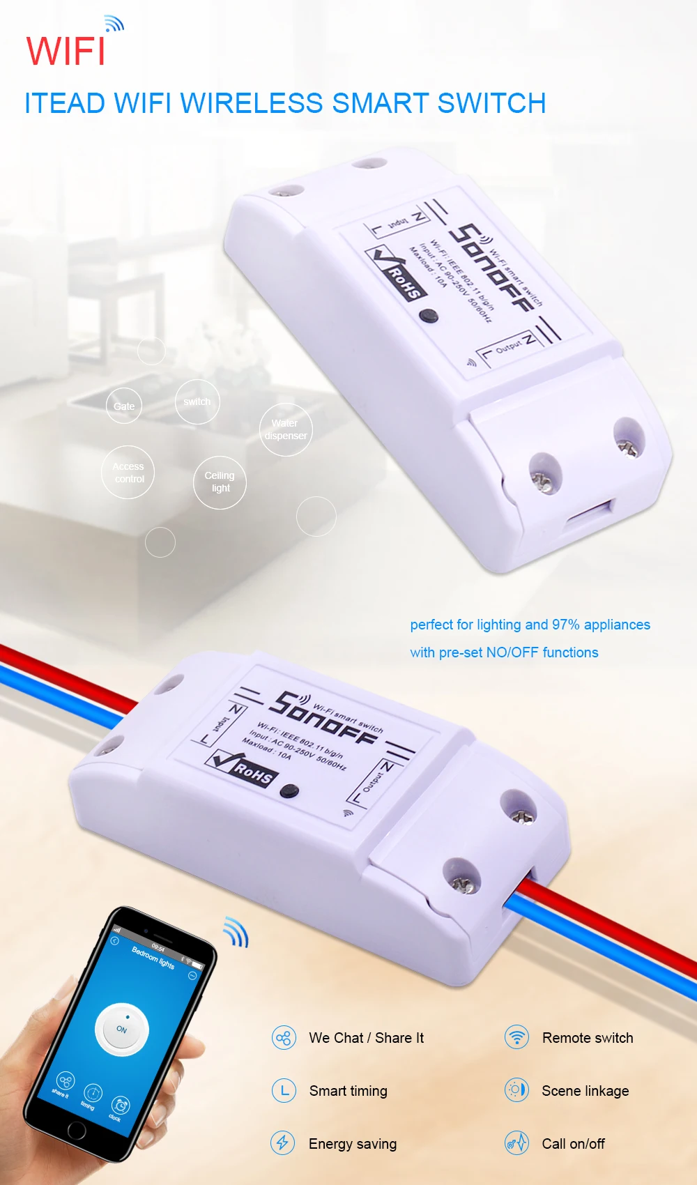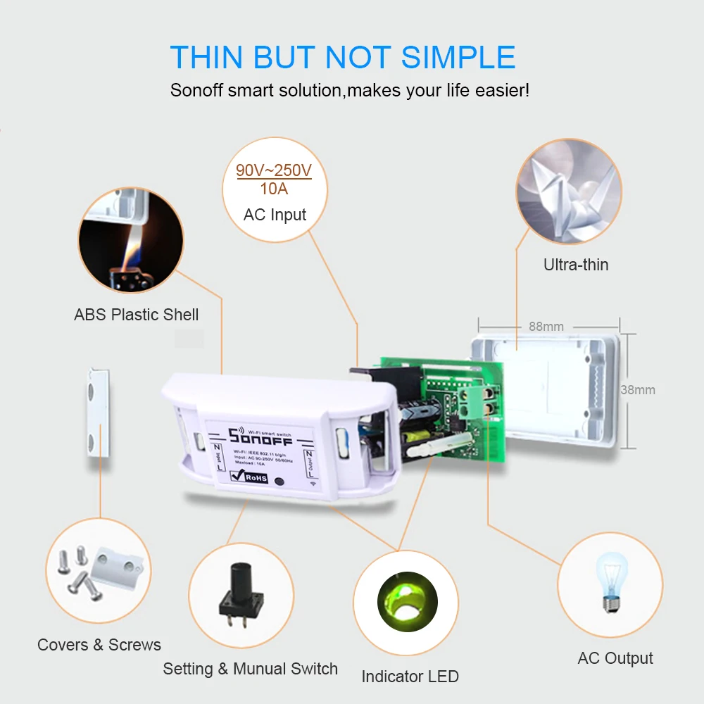 10PCS Itead Sonoff Basic Wifi Switch Wireless Remote DIY Automatic Smart Home Automation Relay Module Controller Work with Alexa