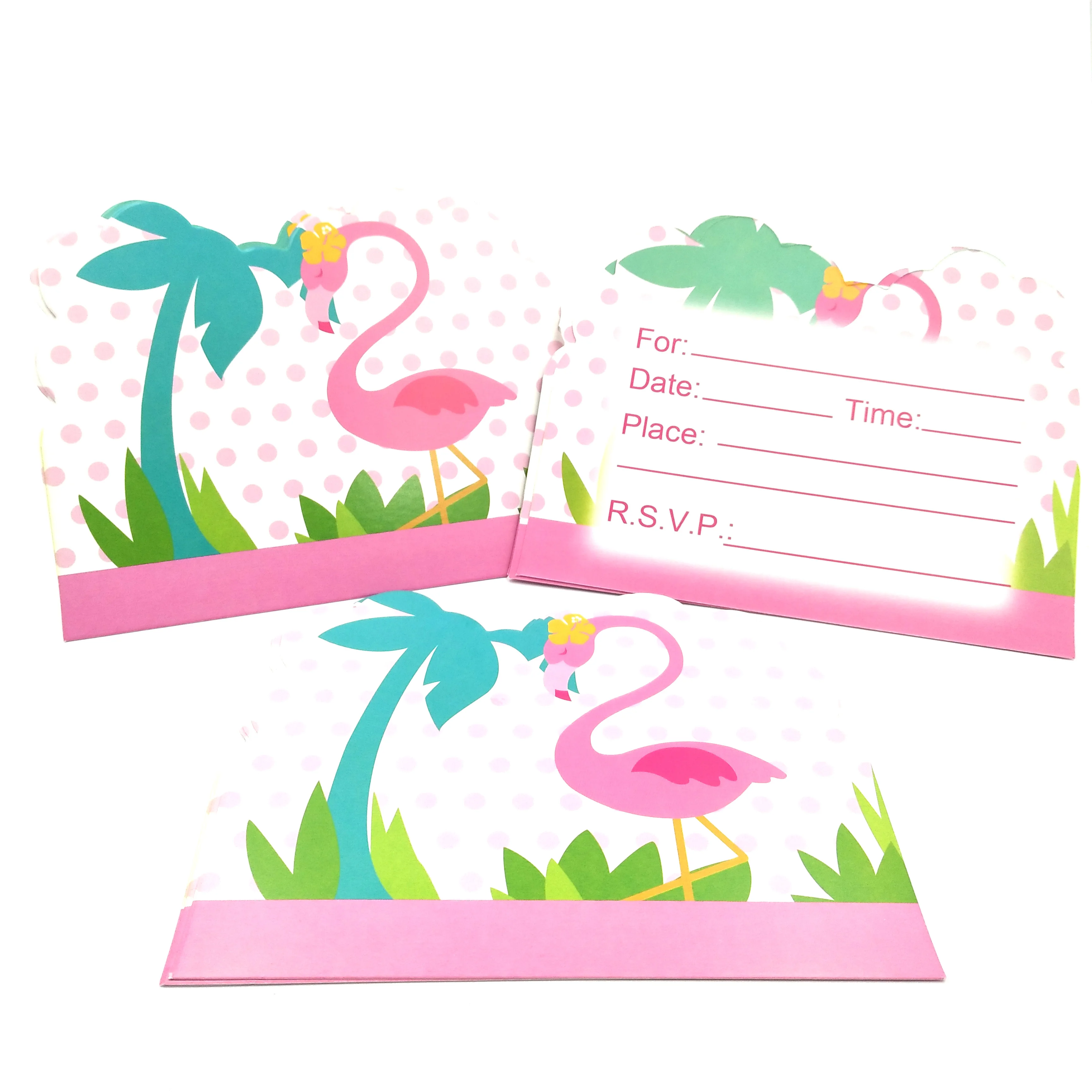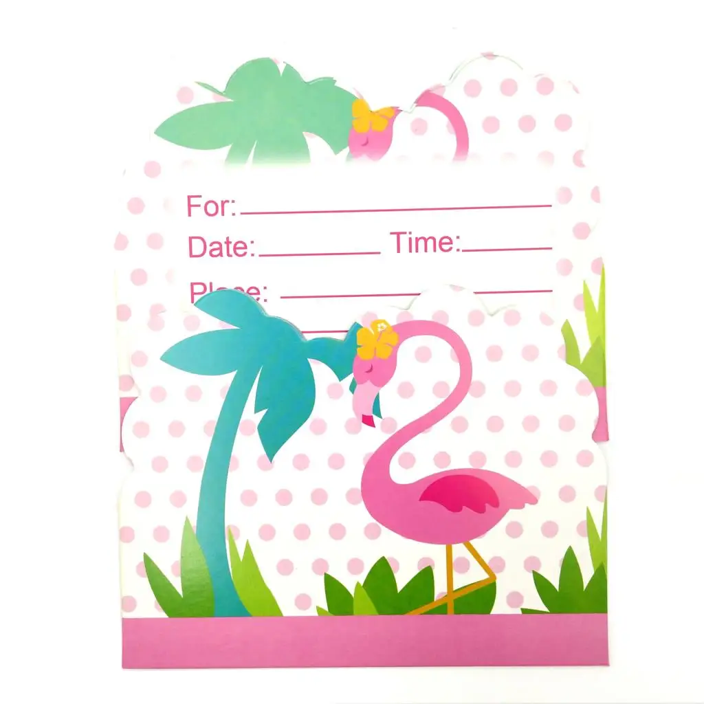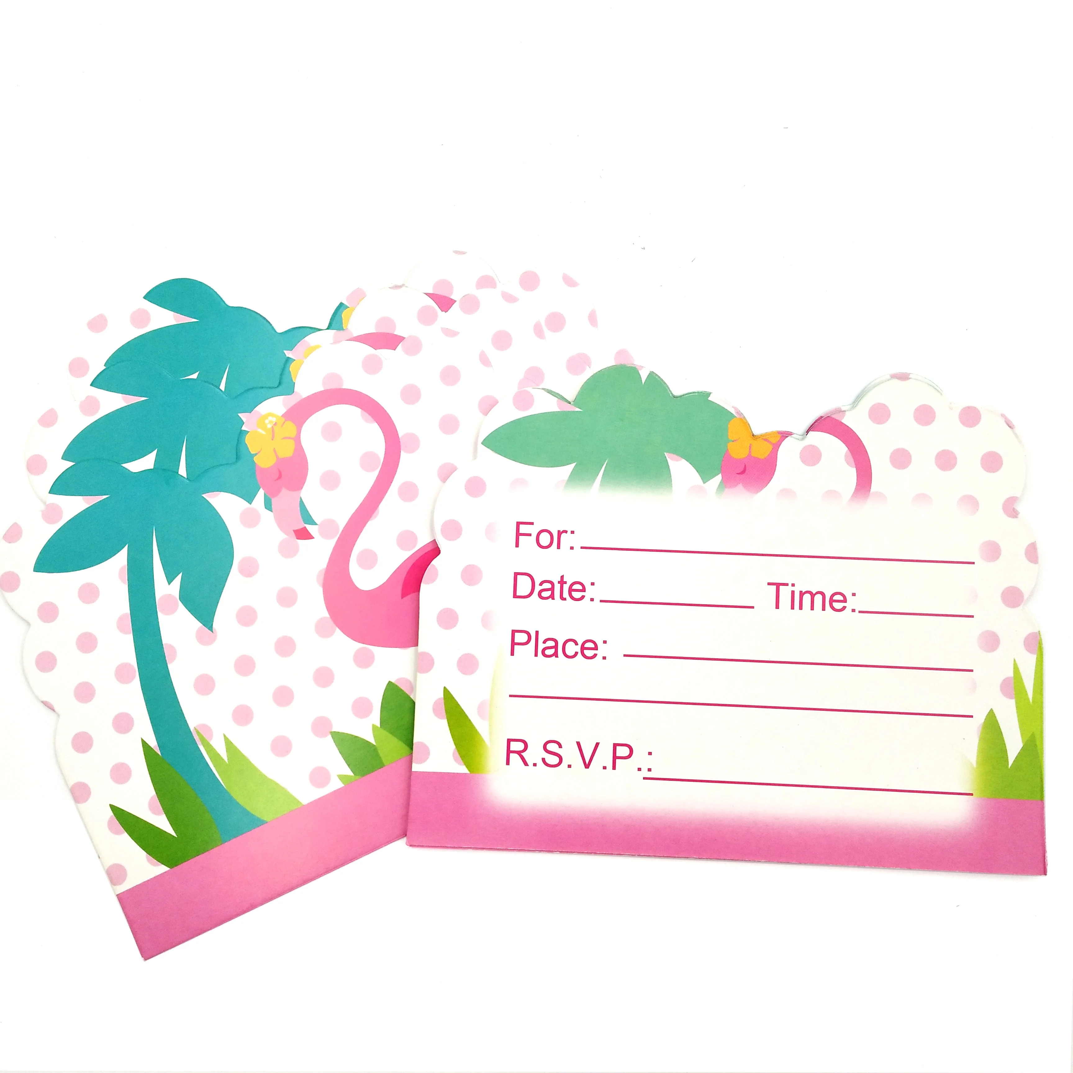 Detailed Description:10pcs/lot Flamingo Theme Party Paper Invitation Card Kids Happy Birthday Party Supplies Decoration Favors Cartoon Supplies
