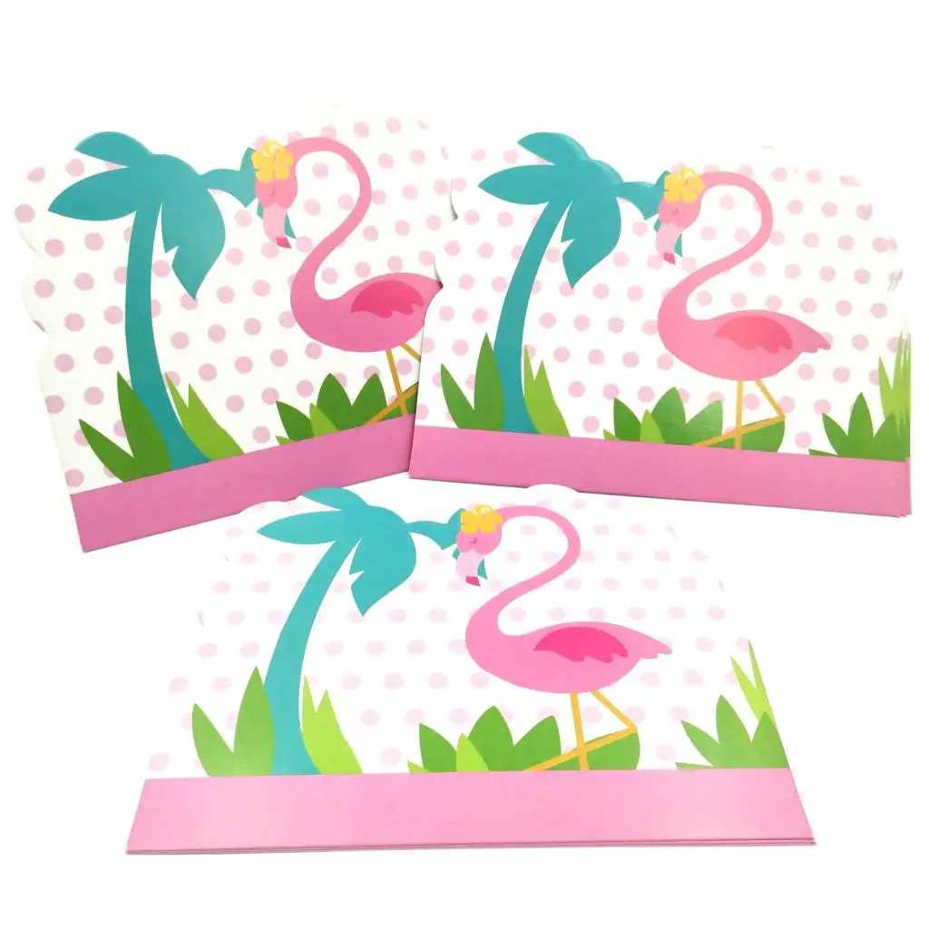10pcs/lot Flamingo Theme Party Paper Invitation Card Kids Happy Birthday Party Supplies Decoration Favors Cartoon Supplies