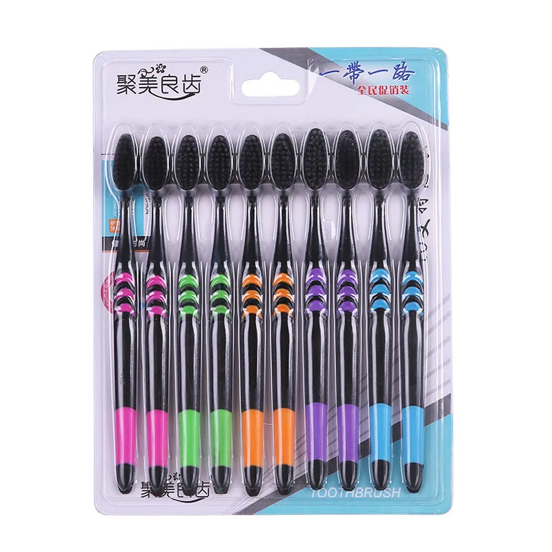 10pcs/lot Ultra Soft Bamboo Charcoal Nano Toothbrush Black Tooth Brush Dental Personal Care Teeth Brush
