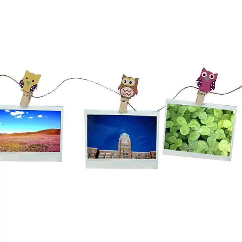 This item is a pack of 10pcs owl shape clips with burlap rope. It is made of durable wood and can be used to hold the clothes, memo, photos, etc. The cute owl shape makes it a nice decoration for your house, desk, wall, etc. Also good for craft, game, favors, etc.