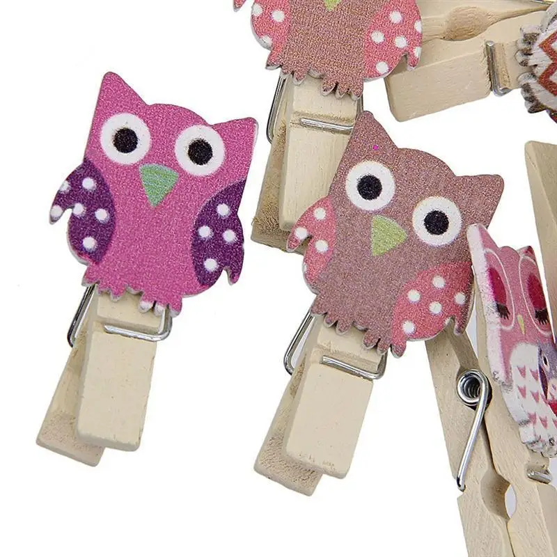 10Pcs Owl Shape Pattern Wood Pins Clips Clothespins with Burlap Rope for Game Favors Craft
