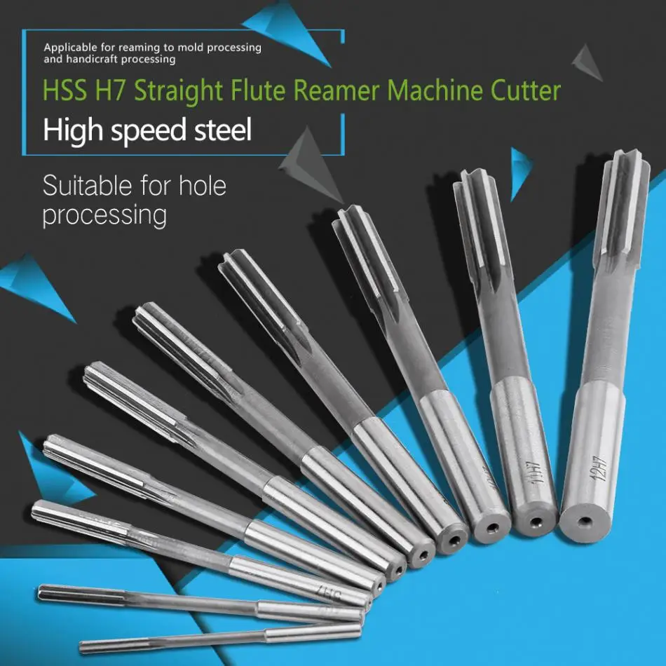 10pcs HSS H7 Straight Flute Reamer Machine Cutter 3/4/5/6/7/8/9/10/11/12mm