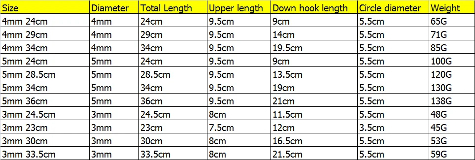 3mm 23cm 3mm 24.5cm 3mm 33cm 3mm 29cm 4mm 24cm 4mm 28.5cm 4mm 34.5cm 4mm 26.5cm 4.5mm 29.5cm 4.5mm 34cm 5mm 24cm 5mm 28.5cm 5mm 34cm 5mm 36cm