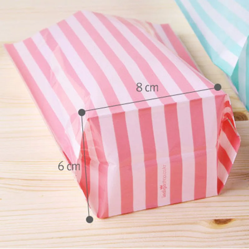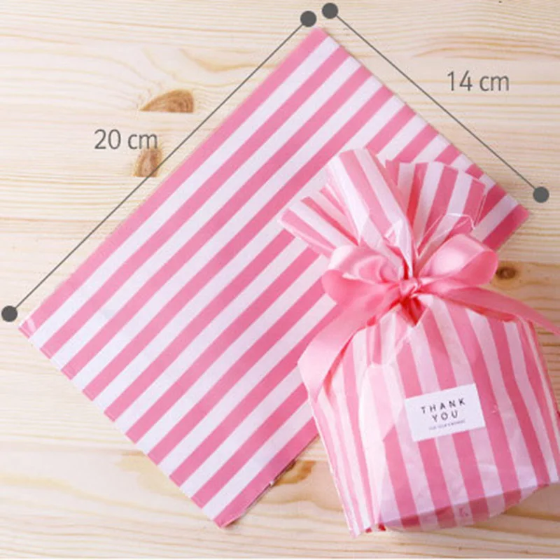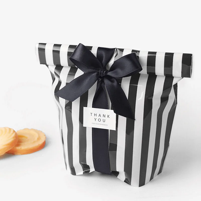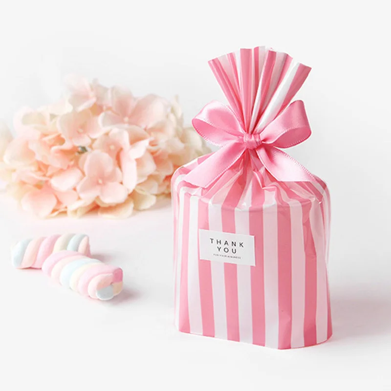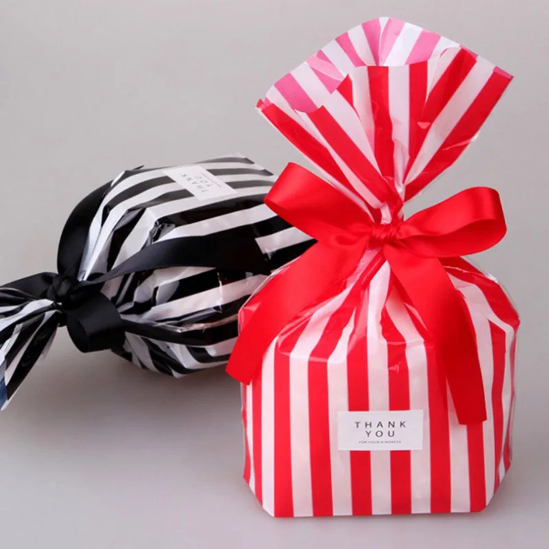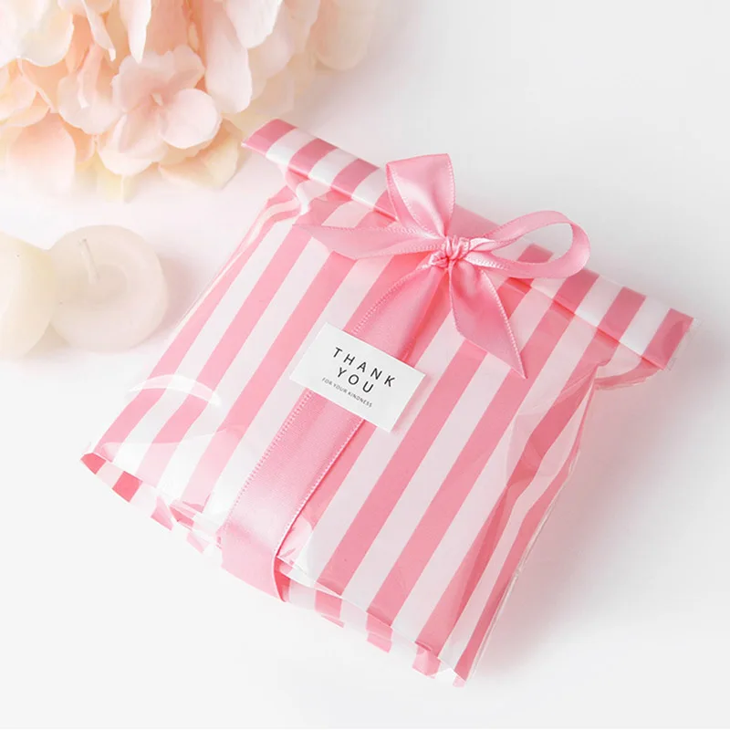 10pcs Stripe Pattern Plastic Bags Cookie Bags Birthday Gift Bags For Candy Biscuits Snack Baking Package Event Party Supplies