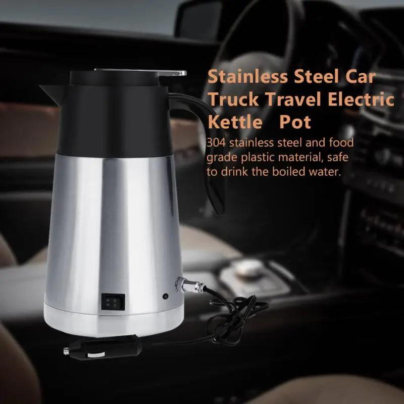 12V/24V 1300ml Stainless Steel Car Truck Travel Electric Kettle Pot Heated Water Cup