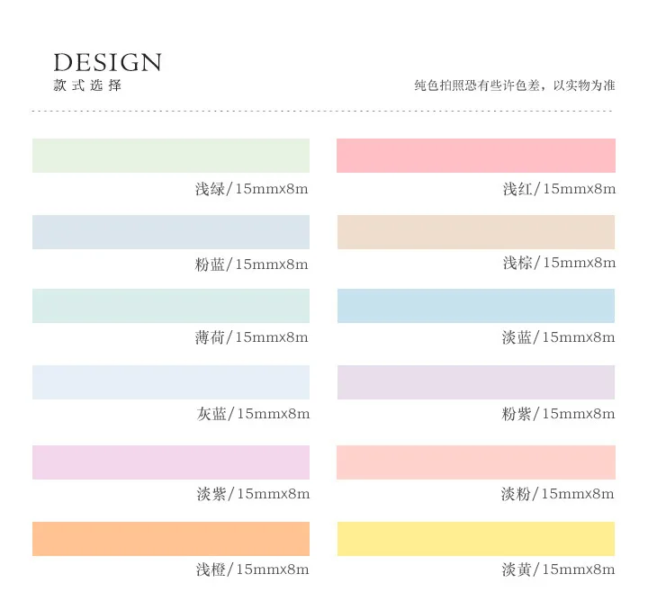 12 color Soft color paper washi tape 15mm*8m pure masking tapes Decorative stickers DIY Stationery school supplies