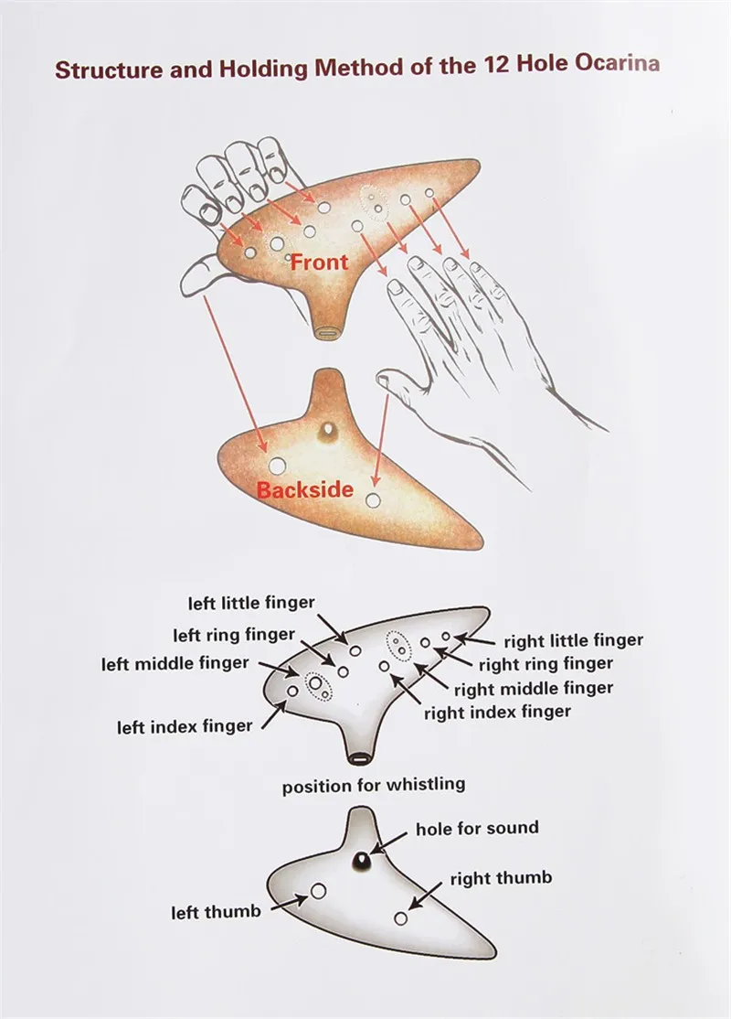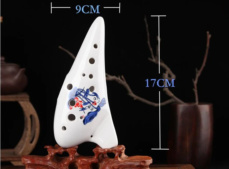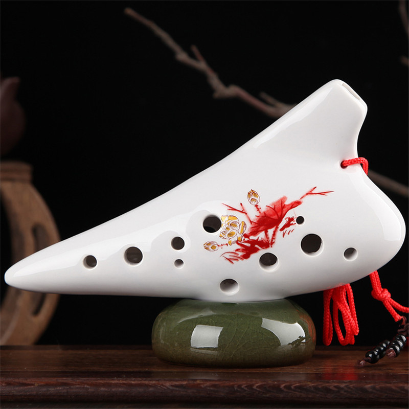 There is 6 holes and 12 holes ocarina. They are different in shapes, but the biggest difference is different vocal range, 6 holes ocarina can blow 10 degrees sound, using cross fingering, can play some simple tunes. 12 holes ocarina can blow 13 degrees sound, using suitable fingering, can play most of the songs.