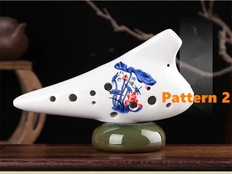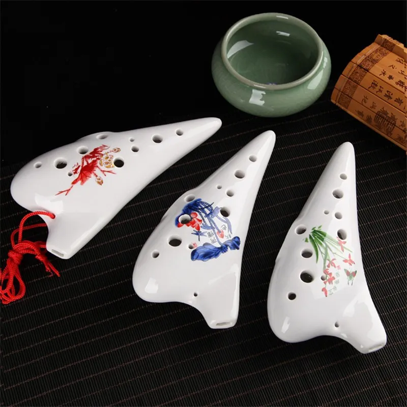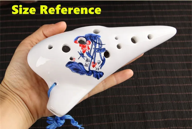 There is 6 holes and 12 holes ocarina. They are different in shapes, but the biggest difference is different vocal range, 6 holes ocarina can blow 10 degrees sound, using cross fingering, can play some simple tunes. 12 holes ocarina can blow 13 degrees sound, using suitable fingering, can play most of the songs.