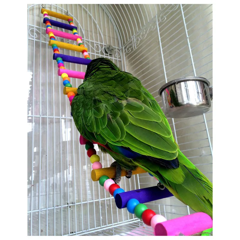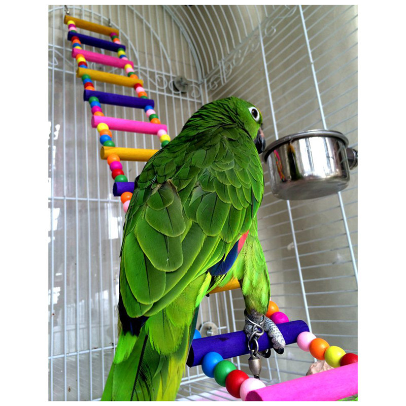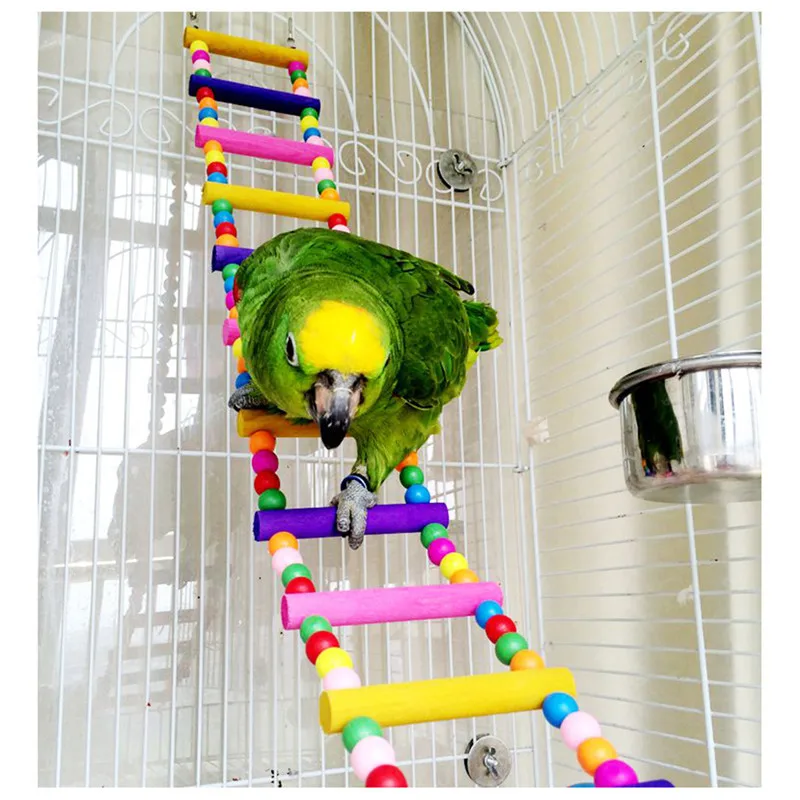 12 steps Colorful Pet Bird Wood Wooden Ladder Climb Toys Parrot Rope Macaw Parrot Bites Harness Cockatiel Budgie for Birds Cage Hanging