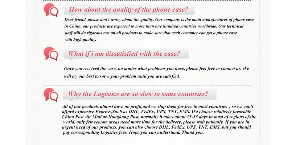 • If you did not receive the product within the guaranteed time( 45 days not including 2-5 day processing) you can request a refund or a reshipment.