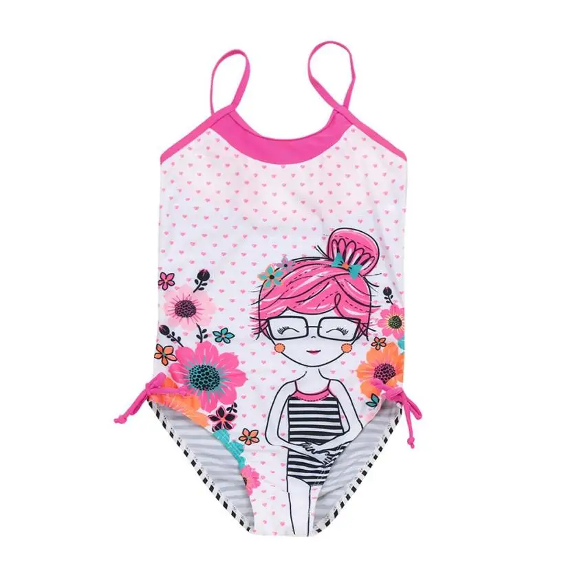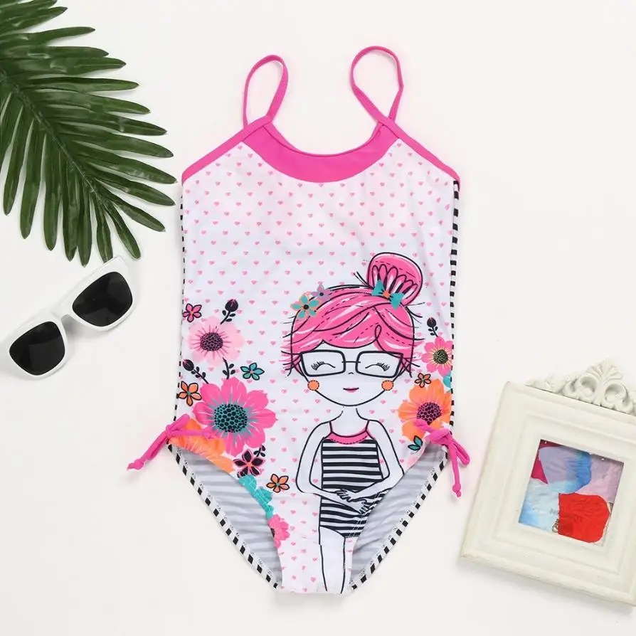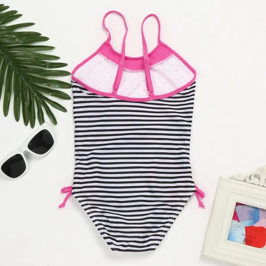 12Months~6y Children Kids Cartoon Striped Print One Piece Bathing Swimsuit Swimwear Clothes 2018 New Summer Girls Swimwear