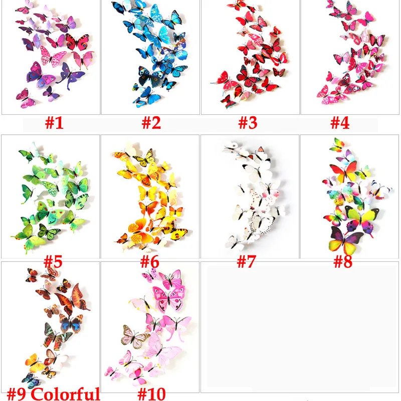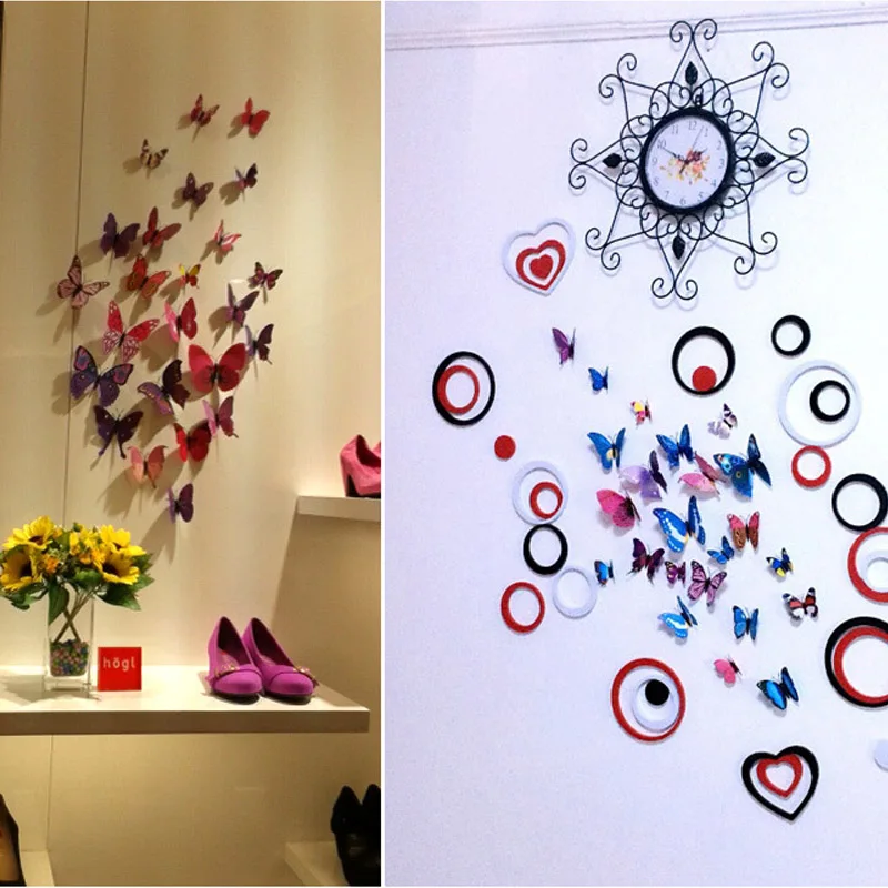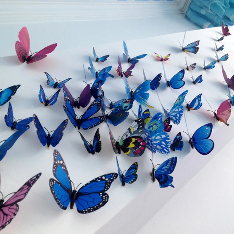 12pcs PVC 3D DIY Butterfly Decal Magnetic Sticking Feather Mandala Painting Stencils For Wall Large In Wall Stickes Home Decor