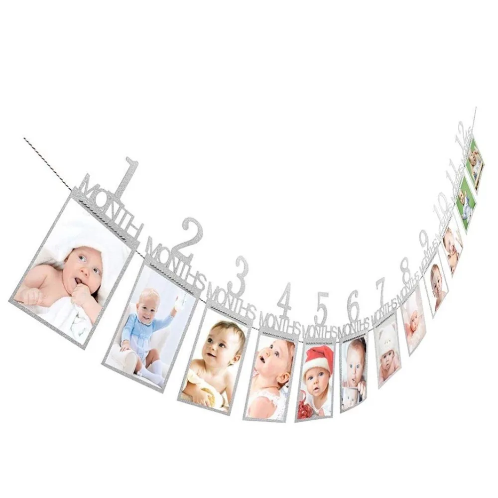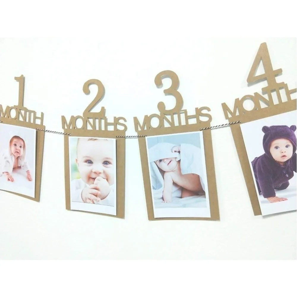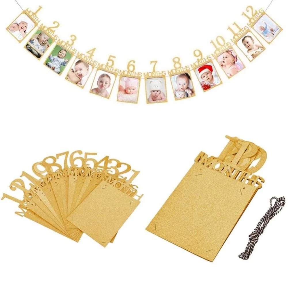 12Pcs/set 12 Months Photo Banner Baby Shower Boy Girl First Birthday Party Decorations Baby Photo Frame Happy Birthday Banners