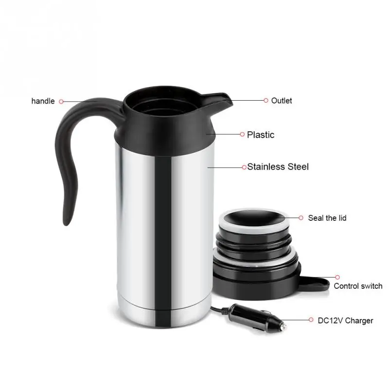 12V 750ml Vehicular Kettle Car Electric Pot Stainless Steel With Cigarette Lighter Auto Accessories Coffee Mug