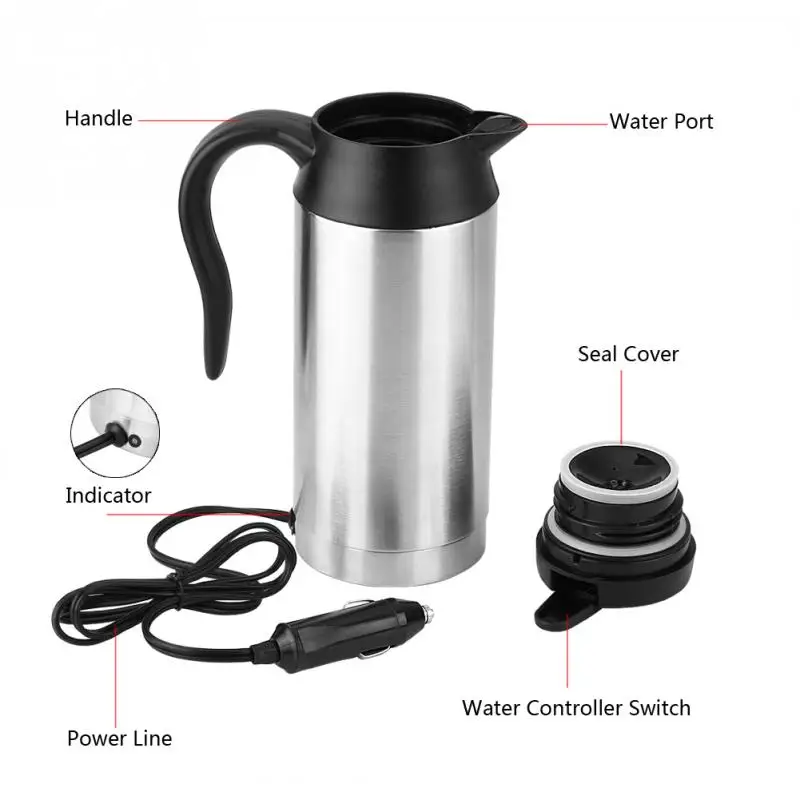 12V Electric Kettle Stainless Steel Car Heating Kettle Mug Chaleira Electric Travel Thermoses Waterkoker Bouilloire Electrique