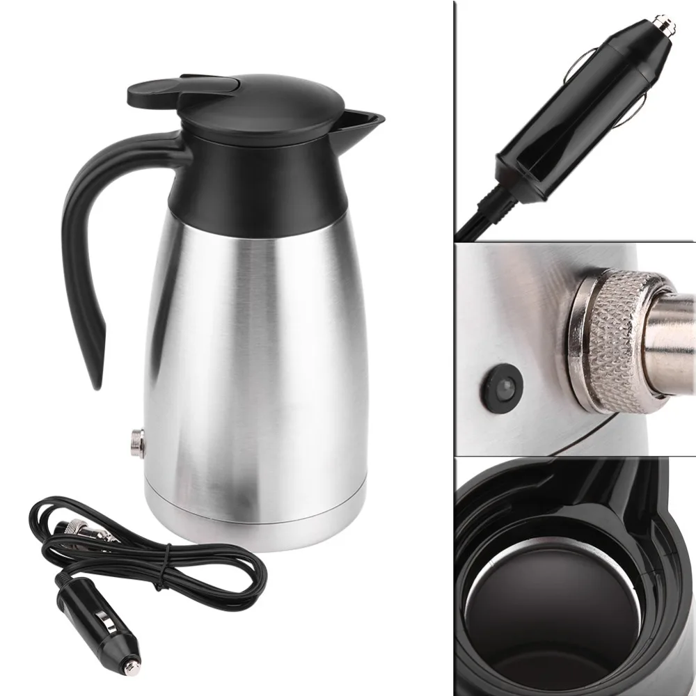 750ml 1000ml 12V Car Stainless Steel Car Automobile Heating Kettle Mug Electric Travel Thermoses Portable Water Cup