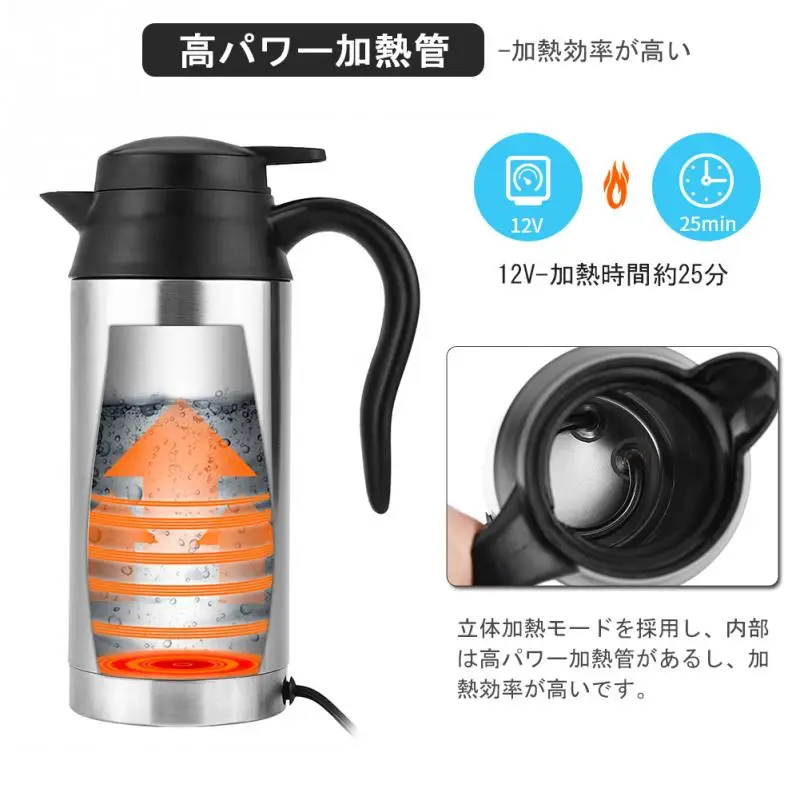 • Powered by DC 12V cigarette lighter plug power source, enables to drink hot water on road.