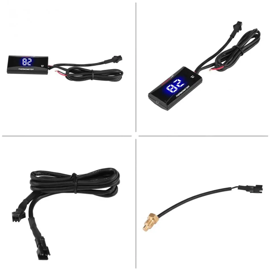 12V Motorcycle Digital Water Oil Thermometer Instrument Water Temperature Meter LED Display Gauge Blue Light