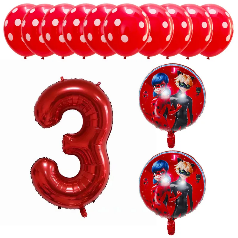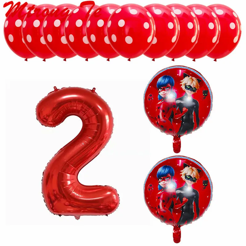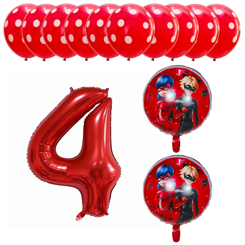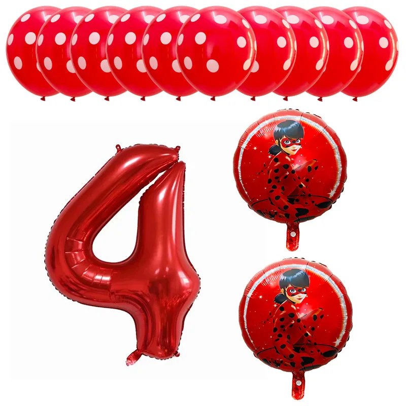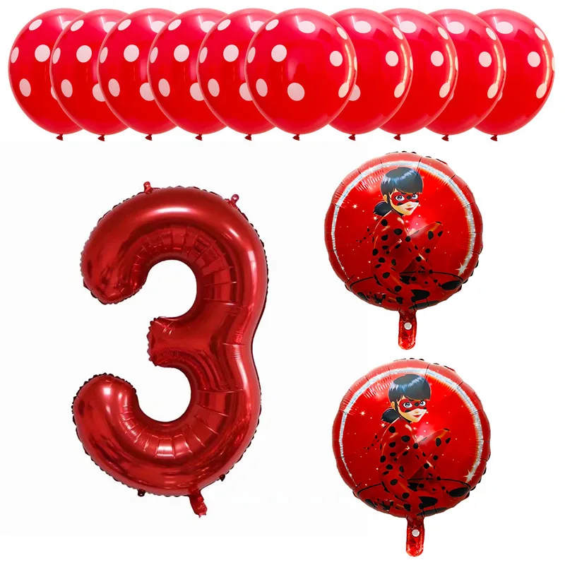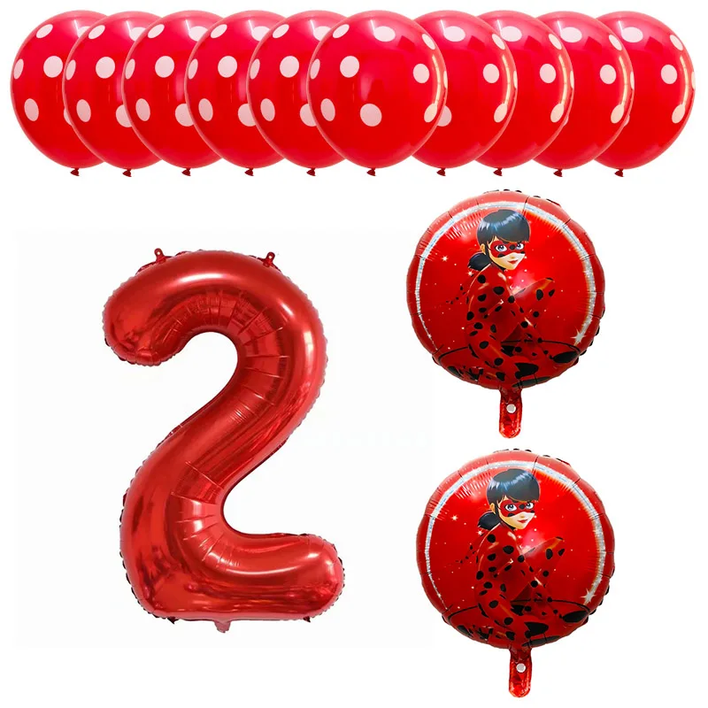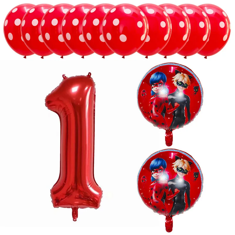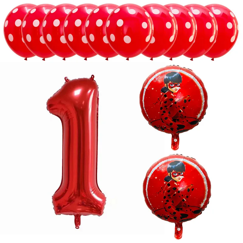 13pcs Miraculous Ladybug Foil Helium Balloons 40″ Red Number Baby 1th Birthday Party Decoration Kids Toys Party Supplies Globos