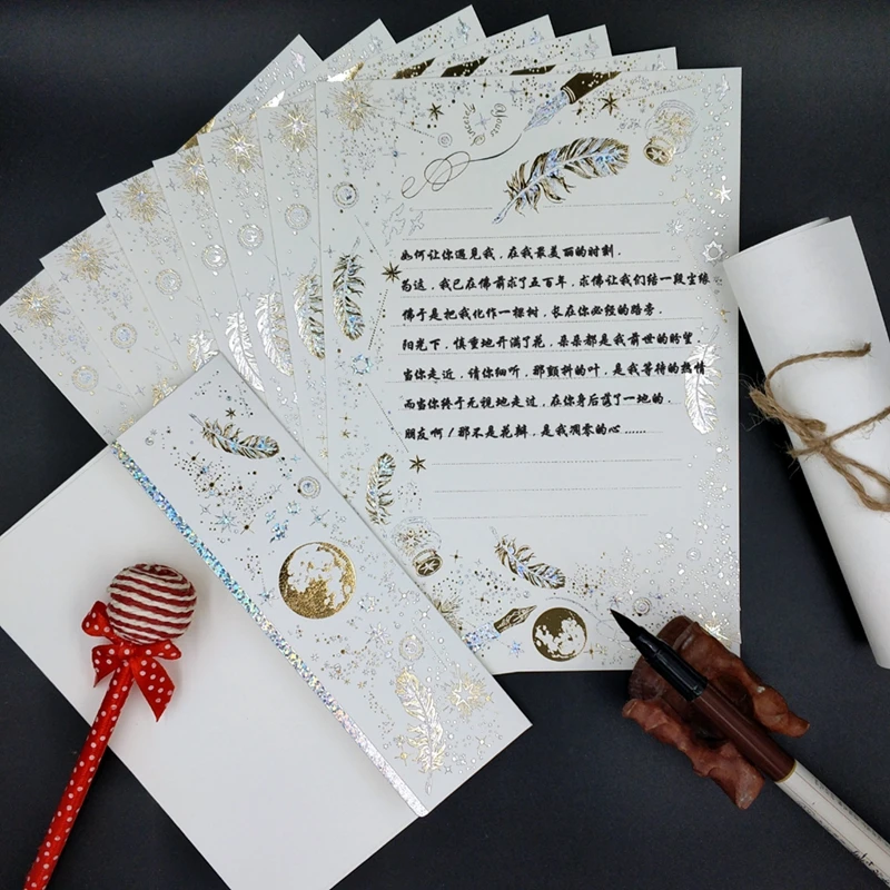 13pcs/set European Vintage 8PC Letter paper+5PC Envelope Hot Stamping Good Quality Paper School Office Supplies Stationery