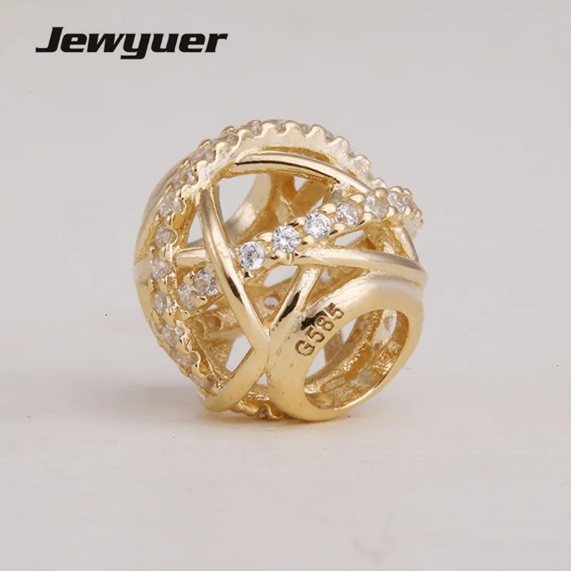 Detail Name: 14k Gold Galaxy Charms beads for women Fit 925 sterling silver bracelets necklace DIY gift to womem Assessories wholesale GD054