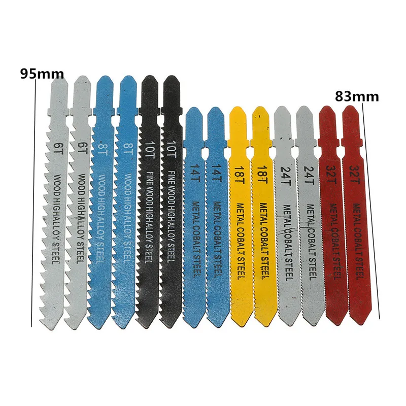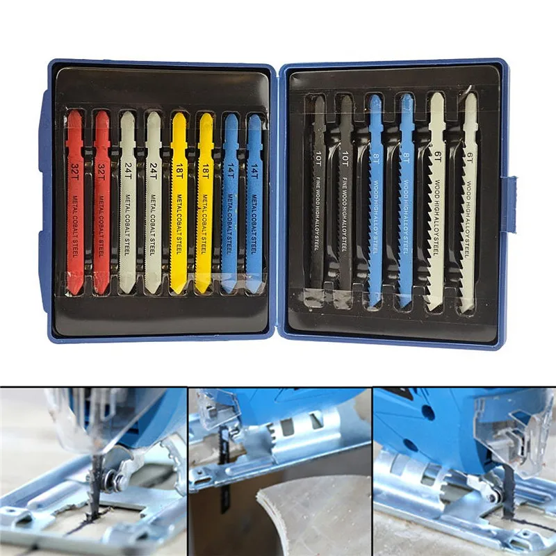 14pcs Assorted T-shank Jigsaw Blade Set Metal Steel Jigsaw Blade Set Fitting For Plastic Woodworking Tools Top Quality