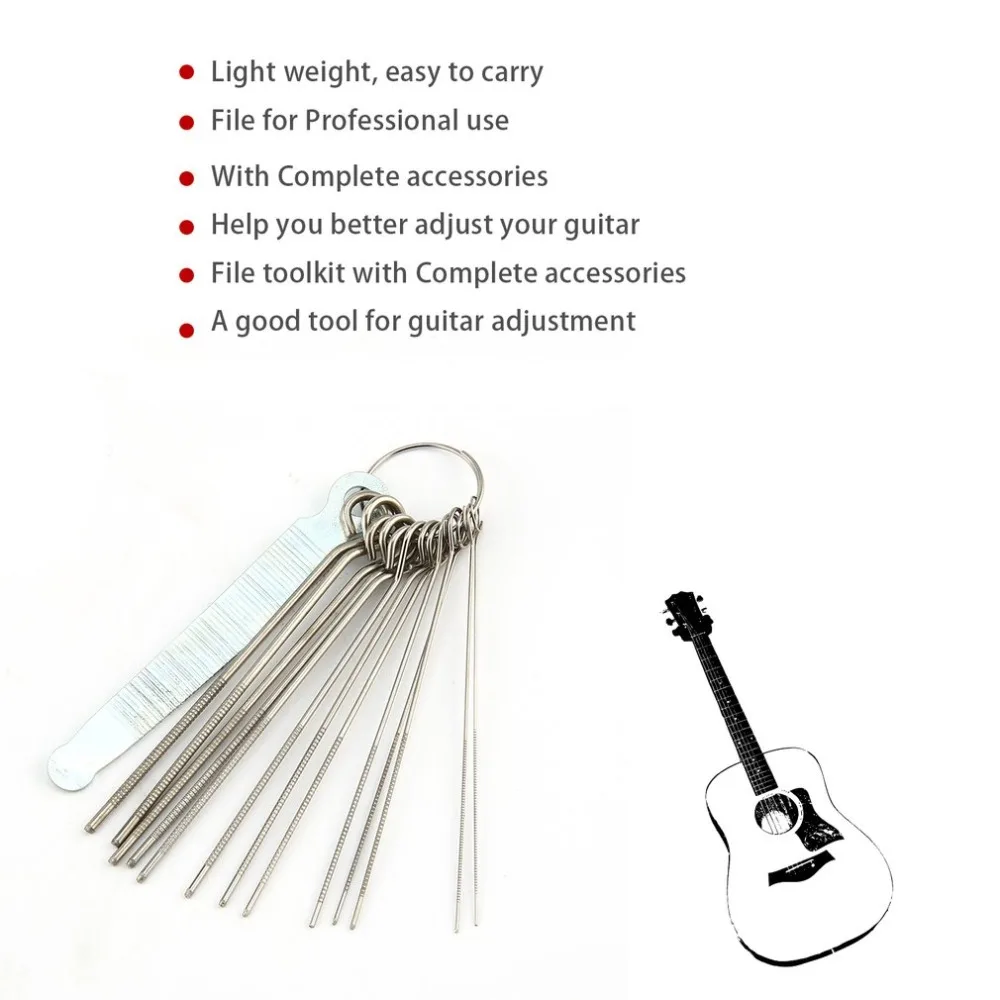 14PCS Guitar Repair Adjustment Tool Kit Files Guitar Neck Groove Grinding Files DIY with Complete Accessories Stainless Steel