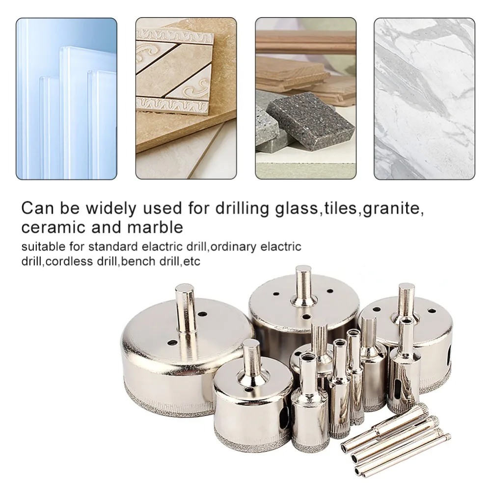 14Pcs/set 3-70mm Diamond Glass Cutter Coated Hole Saw Drill Bit Tool for Glass Marble Tile Wood etc