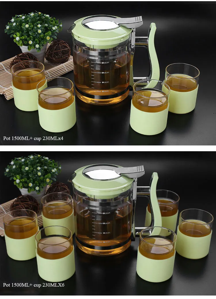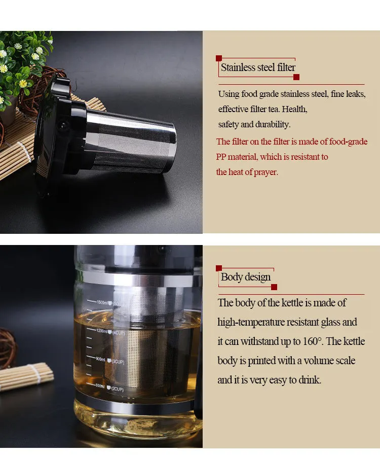 1500ml Large Capacity Heat Resistant Glass Tea Pot With Stainless Steel Infuser For Flower Puer Tea Set Kettle Coffee Teapot