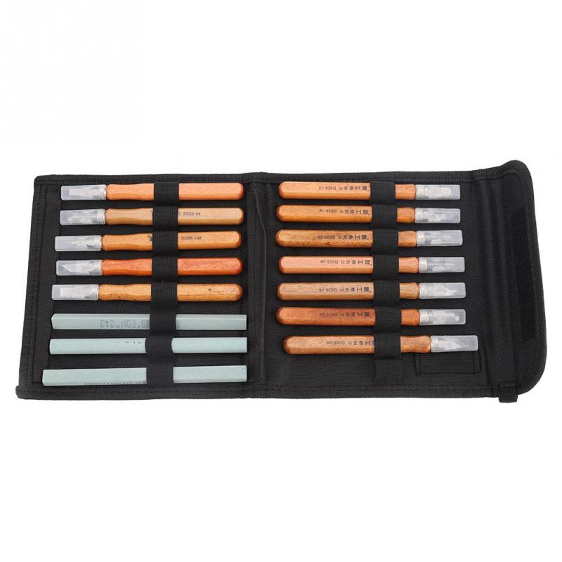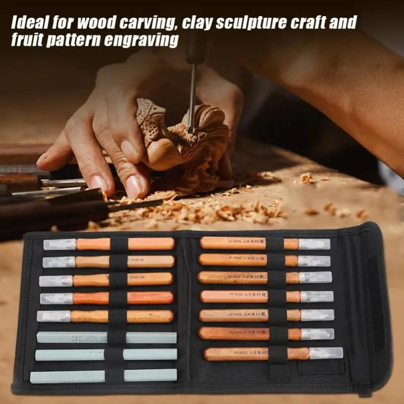 15pcs Wood Carving Knife Hand Woodworking Engraving Tools Set Sculpture Craft Tool With Bag