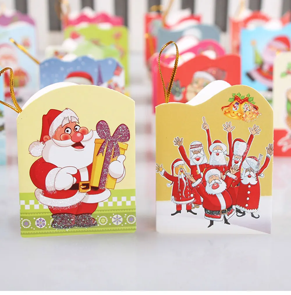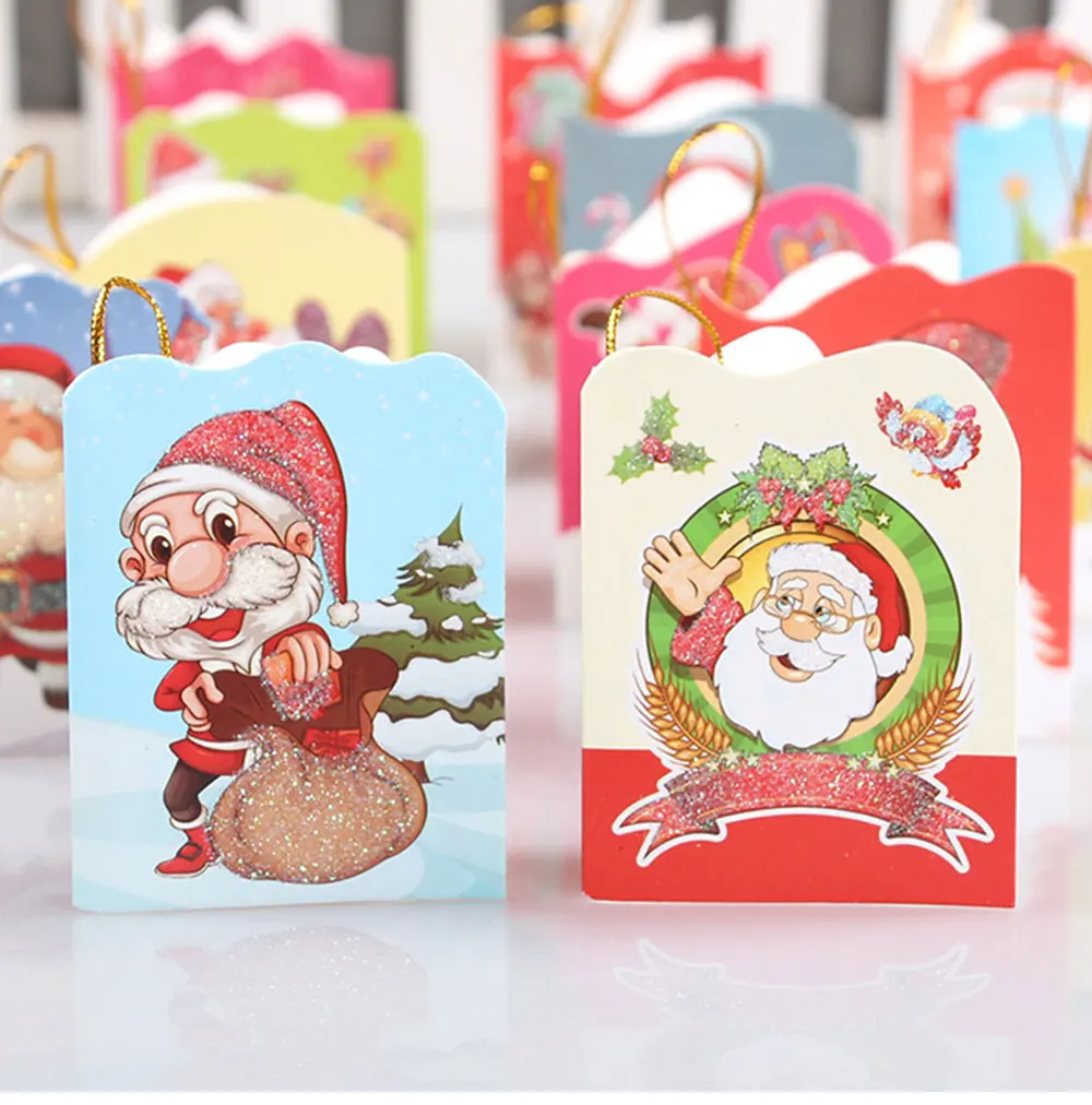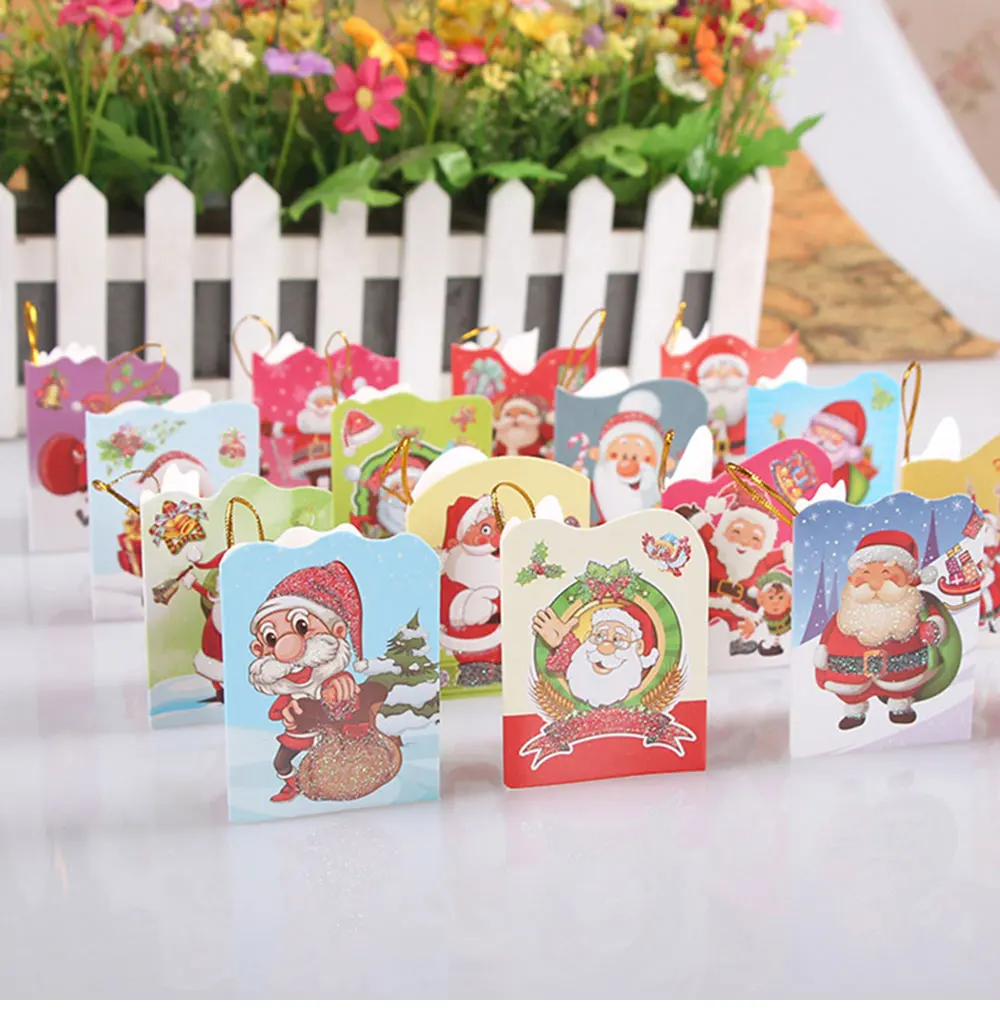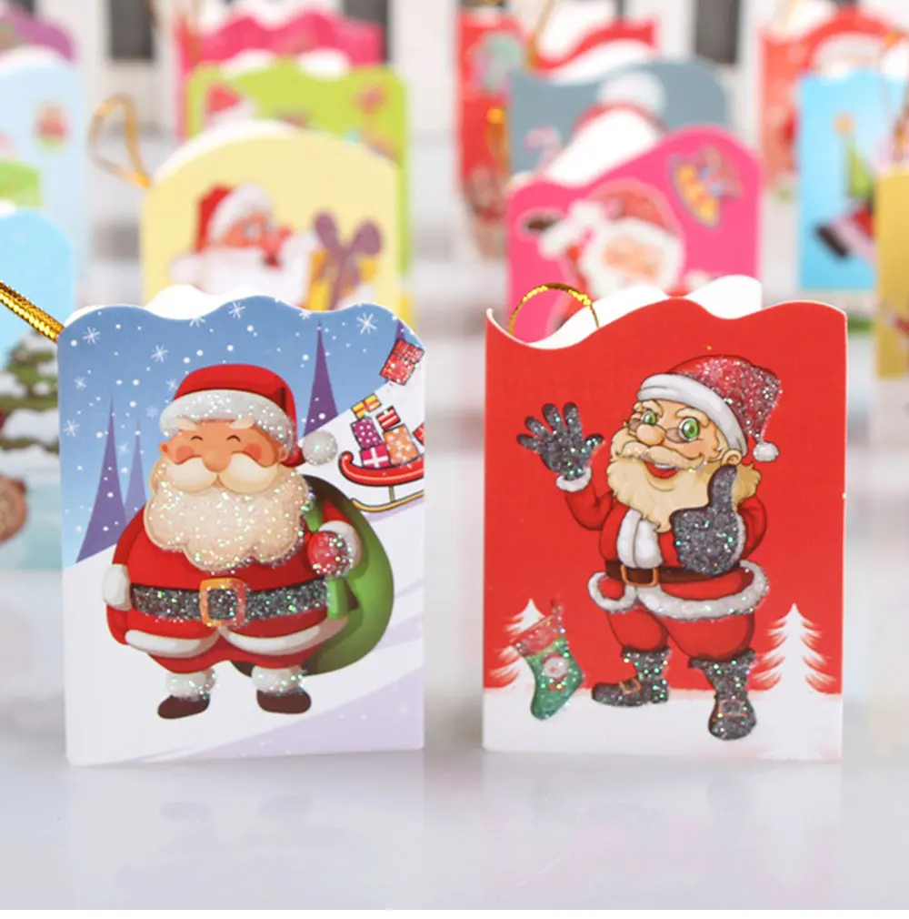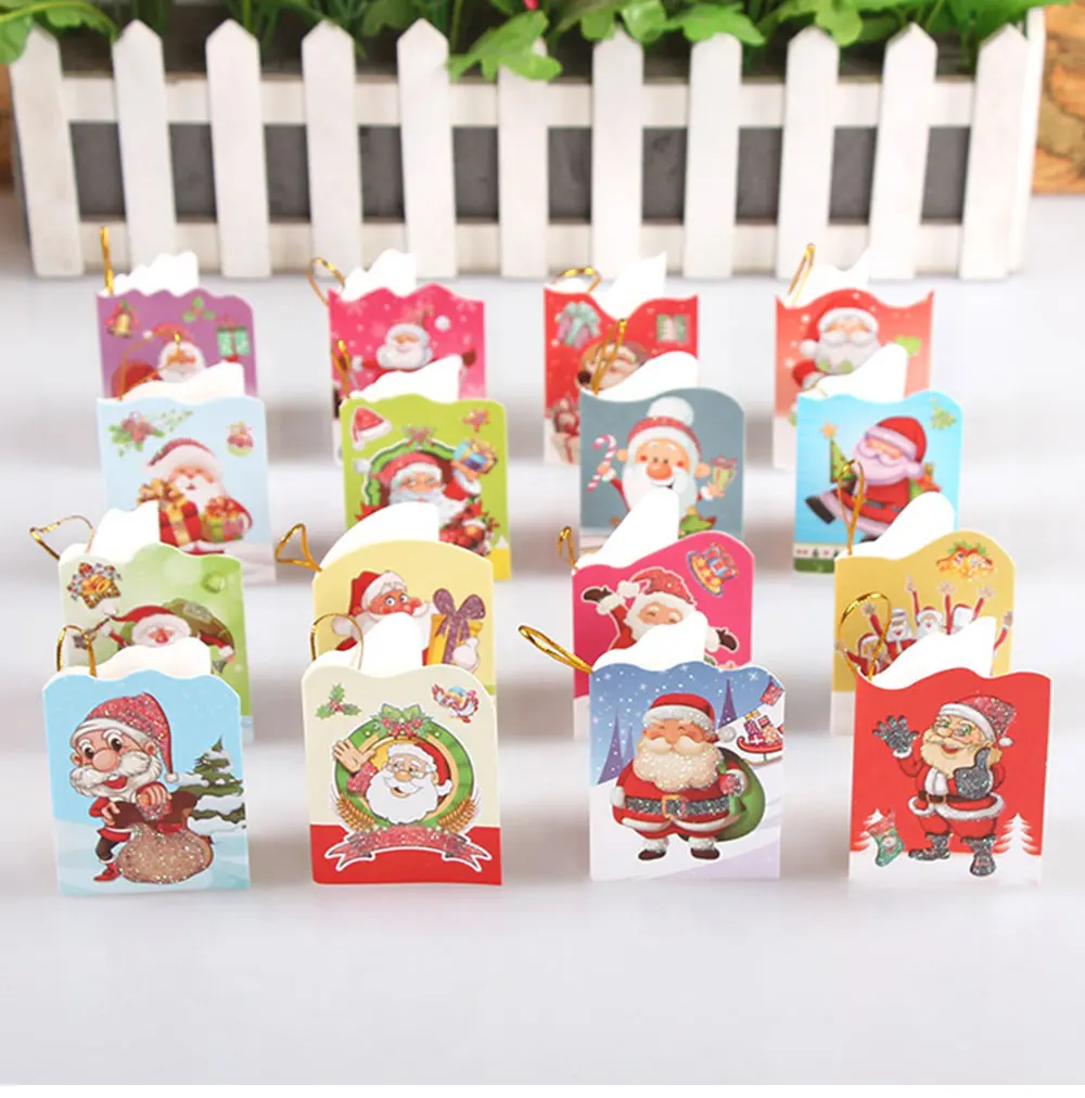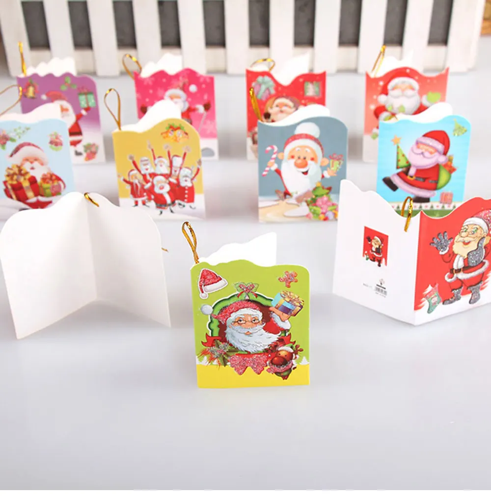 16 pcs Glitter Christmas theme mini hanging card Santa Claus folding card Christmas tree pendant Card Greeting Gift Message Card