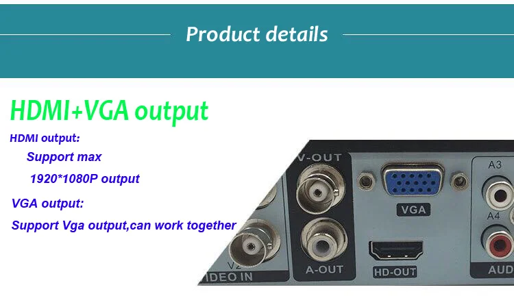 1.Support VGA, HDMI 1080N HD output simultaneously;