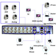 16CH AHD 1080N 6 in 1 DVR video recorder for Analog/AHDTVI/CVI/IP camera P2P cctv system DVR H.264 VGA HDMI output